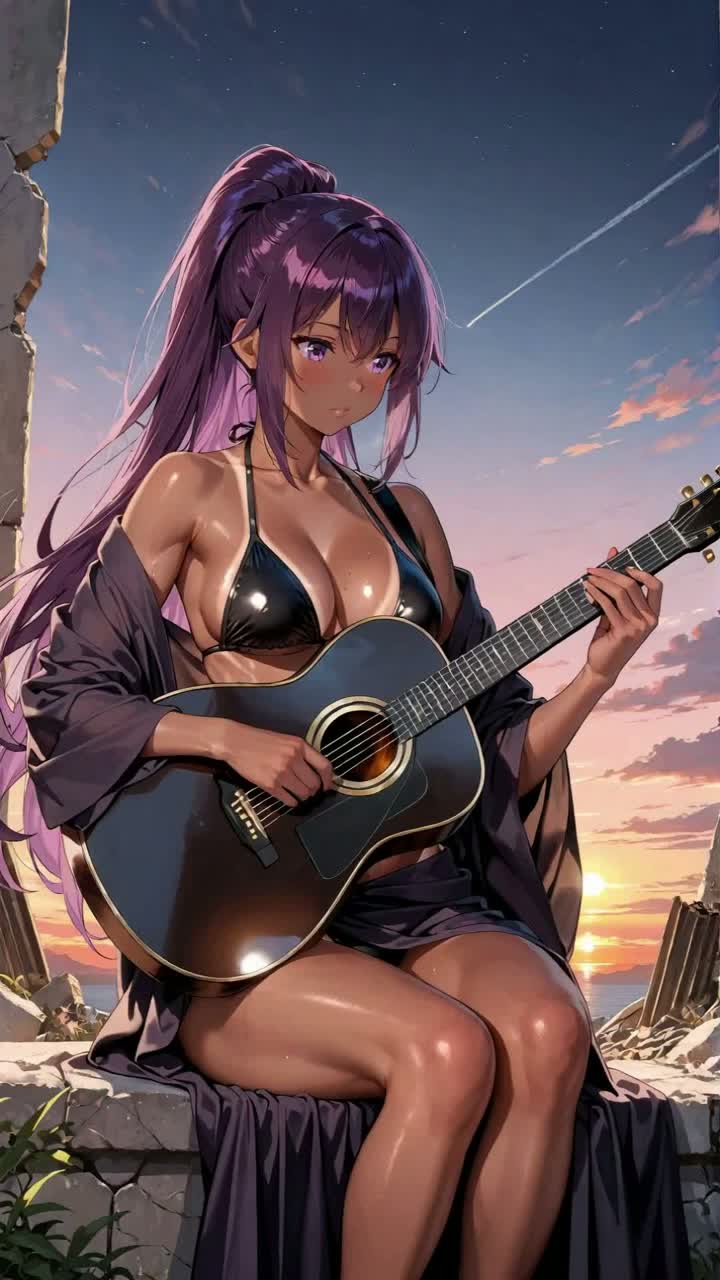 stylish acoustic fusion jazz, expressive fingerstyle guitar, warm resonant tone, jazzy chord progressions, smooth phrasing, gentle syncopation, elegant improvisation, minimal arrangement, intimate lounge vibe, soft sultry female vocals, relaxed youthful tone, soothing seductive energy, extended instrumental sections, technical acoustic passages, harmonics and percussive accents, virtuosic fingerstyle, anime-inspired modulations, lush extended chords, slow chill groove, sensual lounge atmosphere, smoky intimate vibe, breathy seductive tone, alluring acoustic phrasing, warm nocturnal mood, smooth provocative groove