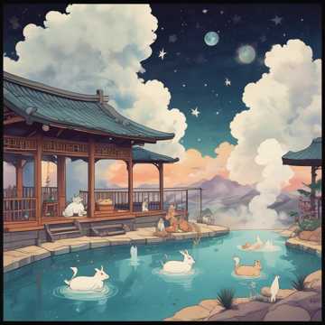 Create a cute and comedic pop song about a happy family on an onsen trip, The vocals switch between a male and a female lead, and sometimes all family members sing together like a fun session, The mood is warm, playful, and cozy, with light pop instrumentation, Include these moments: