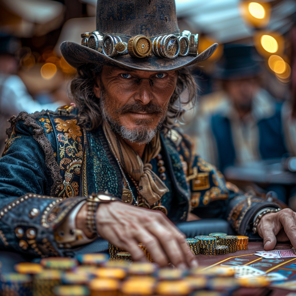 Steampunk Takeoff of “The Gambler” with edgy variety of steampunk musical instruments solos and anthem like rap turned rock house Steam Powered Giraffe like mix
