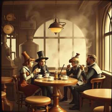 Steampunk with deep half-spoken baritone male voice and soft seductive female voice parts