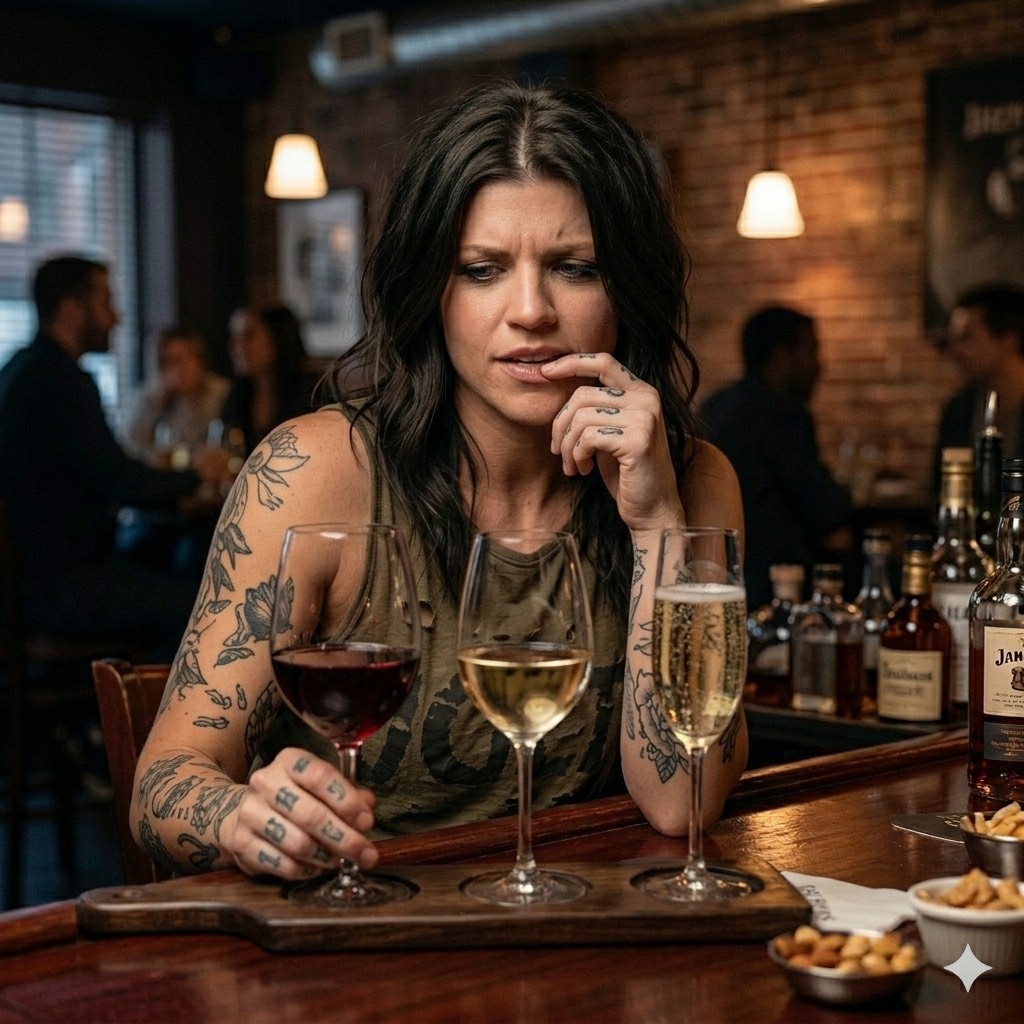 Pop Punk Song, Dance Pop Elements, Female Lead Vocals, Energetic And Catchy, Lyrics About A Girl Drinking Alone Deciding Between Red, White, Or Sparkling Wine, Self-Deprecating Humor, Fast Melodic Distorted Guitars, Punchy Bass, Driving Upbeat Drums, Subtle Pop Production Accents, Claps In Chorus, Gang Or Multi-Layered Female Backing Vocals In Bridge, Chorus Flows Naturally With Pauses For Phrasing, Vocals Warm And Slightly Raw With no Auto-Tune, Catchy Hooks Throughout, Bridge Has Slightly Dramatic, Chant-Like Backing Vocals, Lively, Playful, Radio-Ready Pop Punk Vibe, Production Polished But Maintains Raw Energy