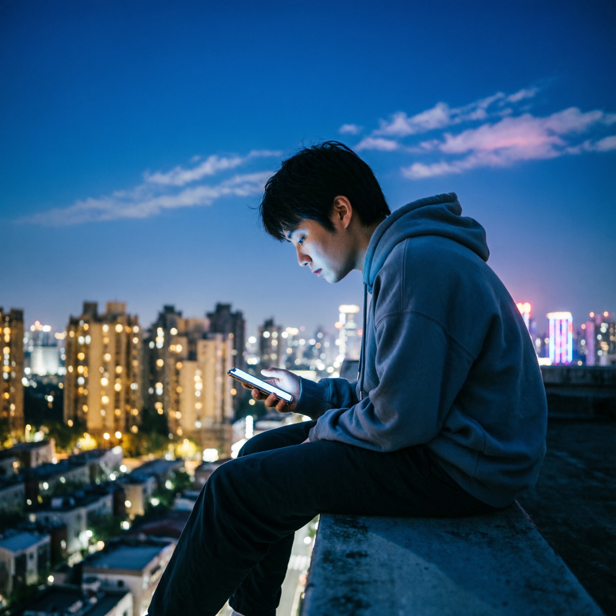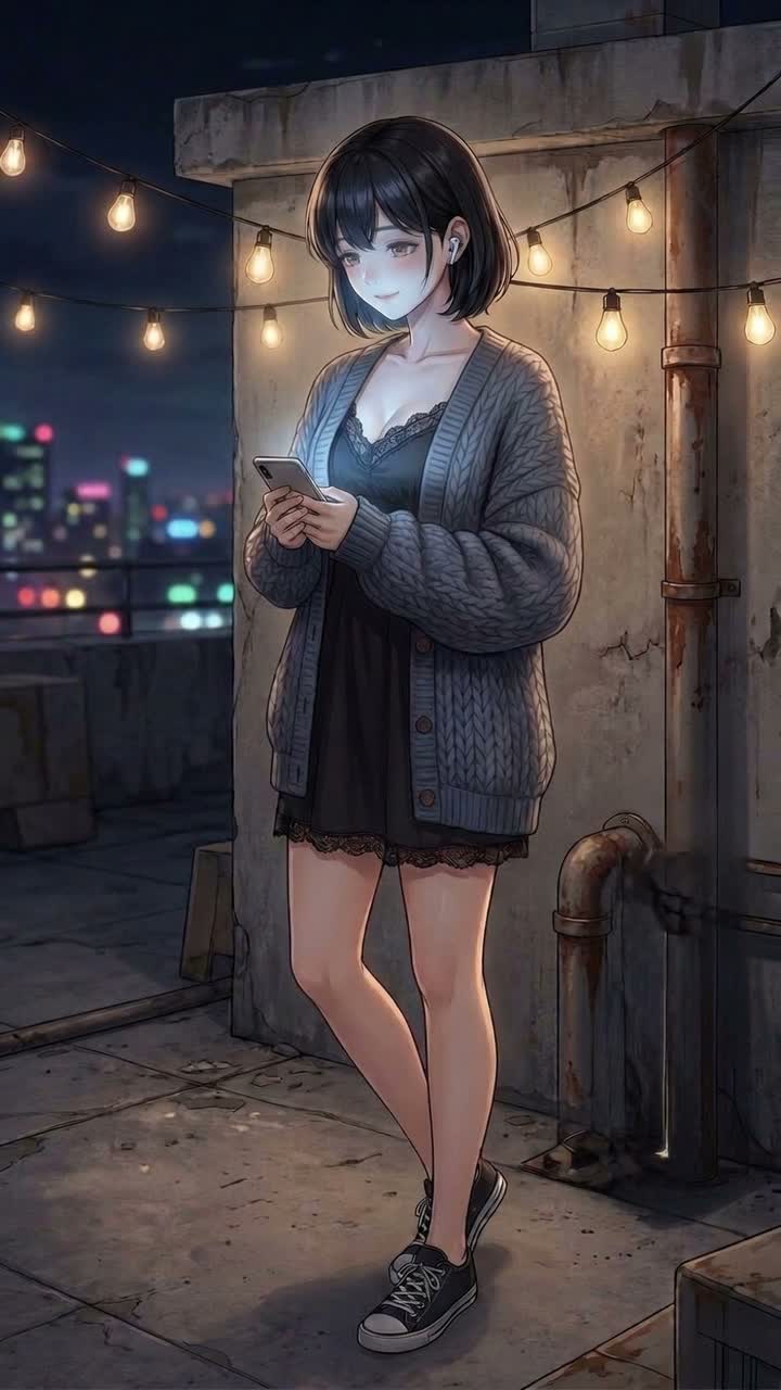 Atmosphere: Intimate, cozy, sentimental, cinematic spatial imaging, late-night rooftop vibe, The only source of epic feeling:J-pop anime girl vocals influenced by Taipei Chinese, gloomy yet shy Vocal Profile: Husky, smoky, and deeply breathy texture, mature and velvety tone