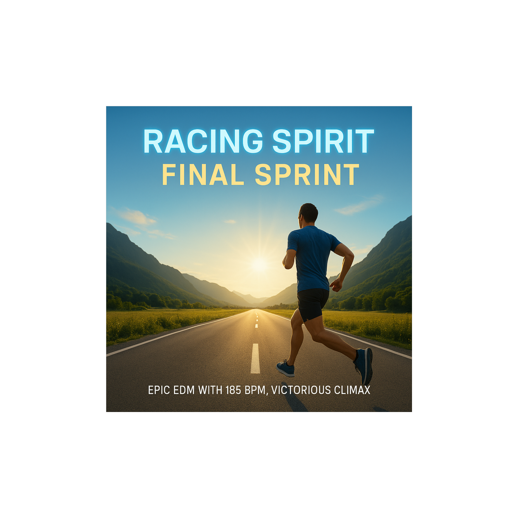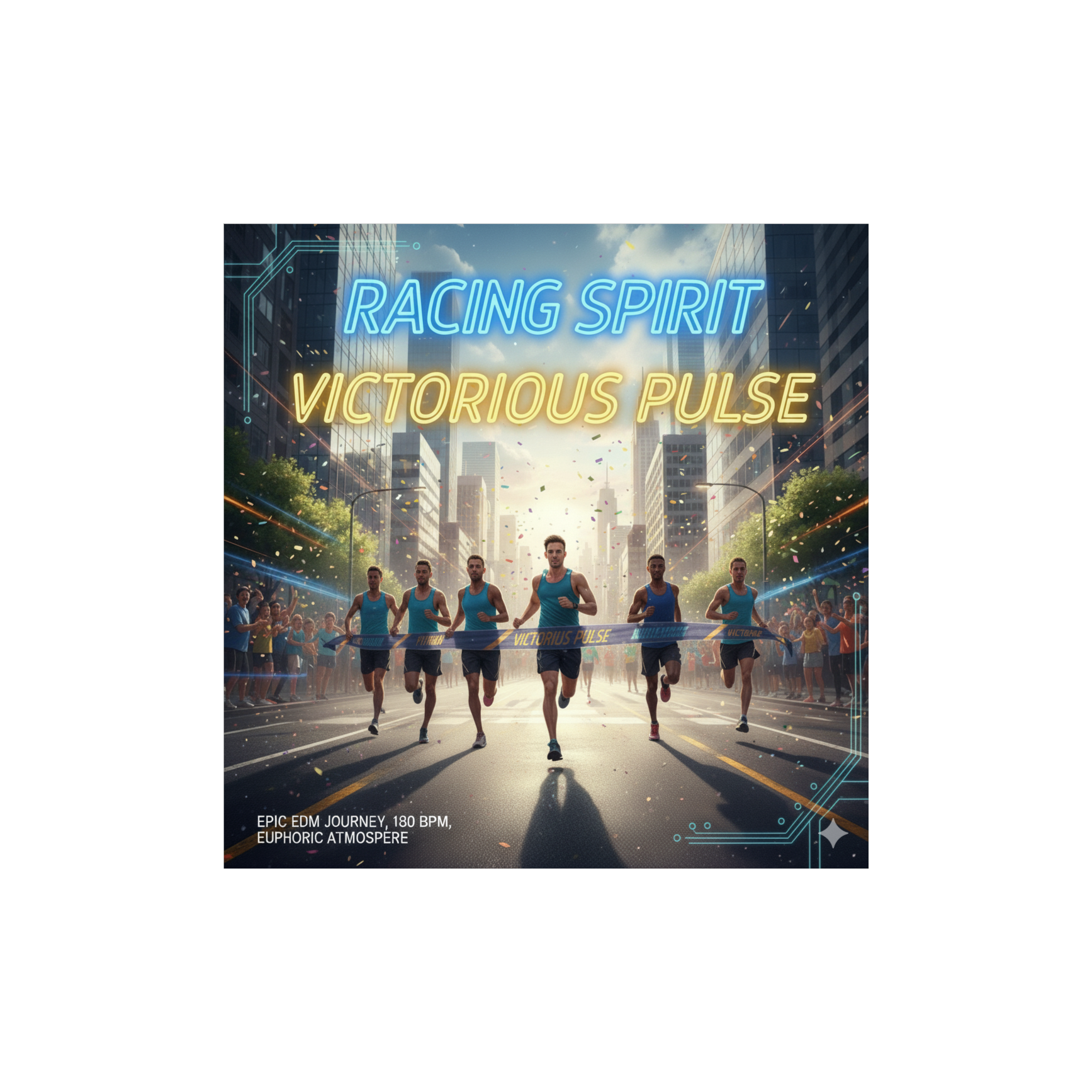 Epic hybrid EDM + tribal anthem, 185 BPM, euphoric climax, cinematic drums, pulsating synths, victorious energy, high-speed rhythm, emotional and heroic finish for the final sprint