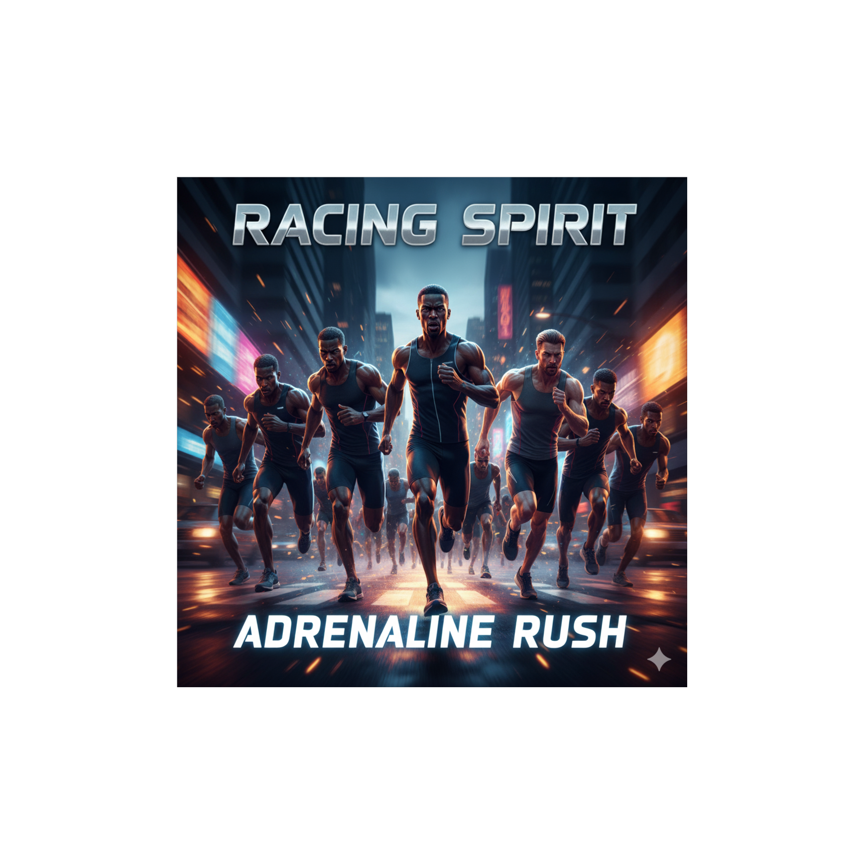 Epic hybrid orchestral electronic anthem, fast tempo, intense synth layers, cinematic drums, heroic energy, racing spirit, dynamic strings, power build, emotional climax