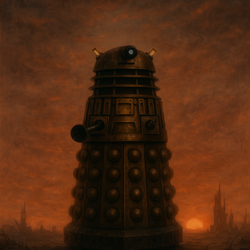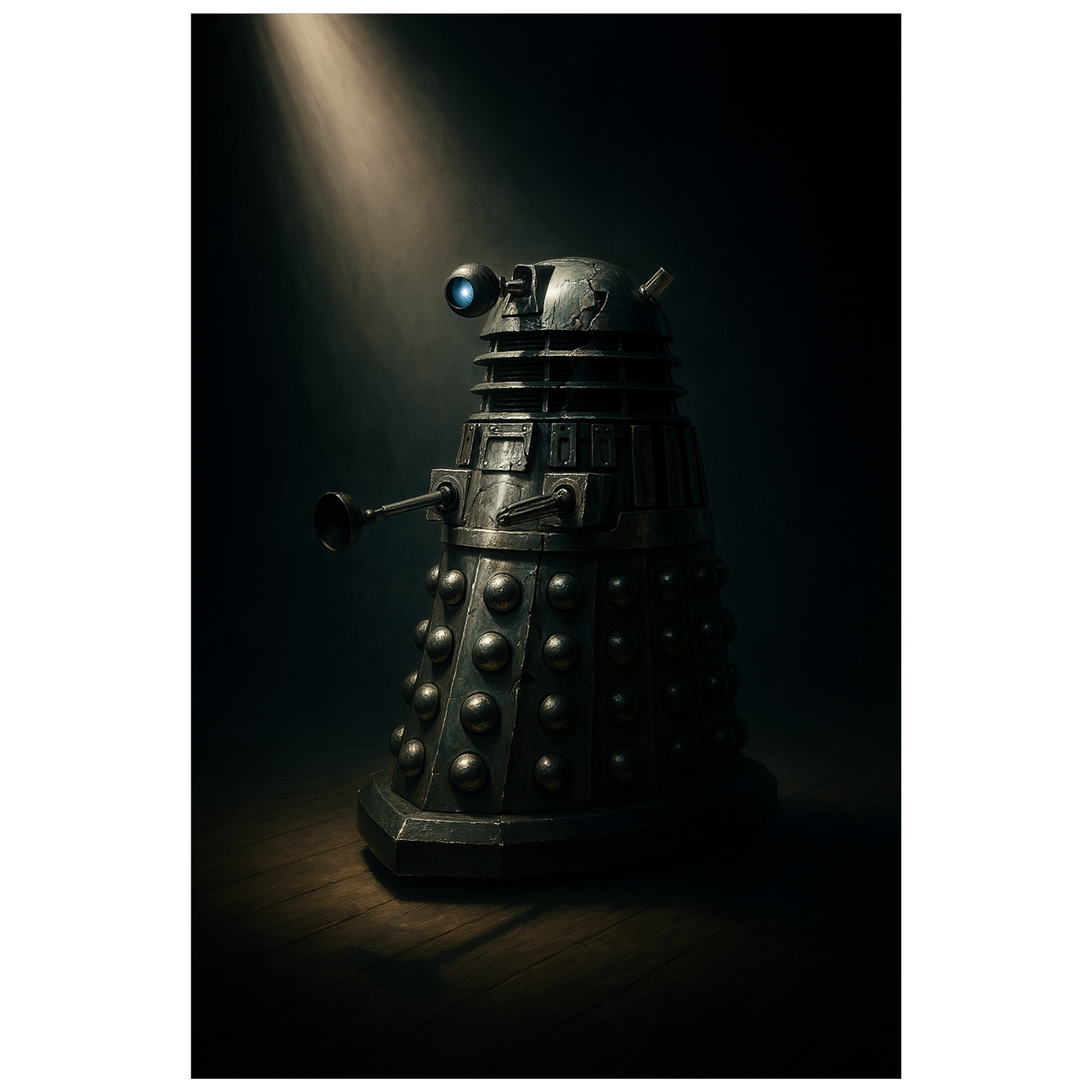 Create a cinematic post-rock and synthwave noir track titled “Final Directive (One Last Exterminate), ” The lyrics reflect a lone Dalek facing the end of its existence after the fall of its race, Blend ambient synths, echoing drums, and emotional guitar with a haunting, robotic vocal performance, Include poetic, melancholic lyrics like “One last exterminate, one last breath, ” and “I was machine… now just a shadow lost in time, ” The tone is tragic, beautiful, and reflective — the final song of a dying machine haunted by memory and legacy