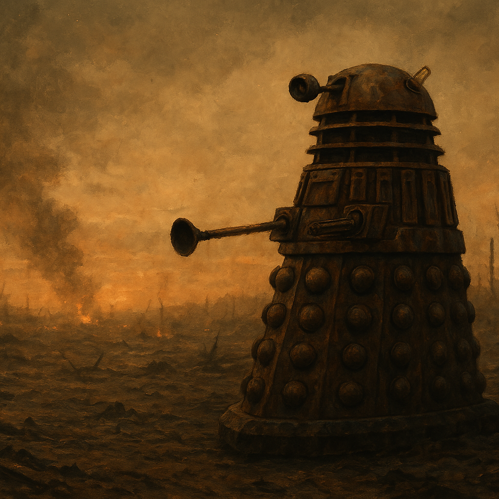 Create a slow, emotional Delta blues song titled “Skaro Blues, ” The vocals should be gritty and soulful, with minimal instrumentation: slide guitar, soft percussion, and atmospheric harmonica, The lyrics are from the perspective of a lone, broken Dalek reflecting on the destruction of Skaro, the loss of purpose, and a lifetime of violence turning to regret, Include lines like: “Got those Skaro blues, deep down in my coil, ” and “Even Daleks gotta learn to die, ” The mood should be mournful, post-apocalyptic, and strangely introspective—blending science fiction with the timeless pain of the blues