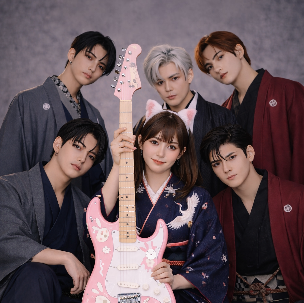 Create a catchy girls-style Japanese rock song with a powerful and stylish attitude, The mood is energetic, confident, and determined, with a subtle dramatic edge, Add a light Japanese flavor through melody or phrasing, while keeping the sound modern and rock-driven, Tempo is mid-to-up tempo, The arrangement is built on electric guitars, bass, and drums with a tight, driving groove, Use sharp guitar riffs and clear rhythmic accents, but avoid excessive distortion, Keep the arrangement clean so the vocal always stands clearly in front, The vocal is a strong female singer with a clear, expressive, and confident voice, No shouting or screaming, Singing should be powerful, controlled, and clean, with clear articulation, Top priority: