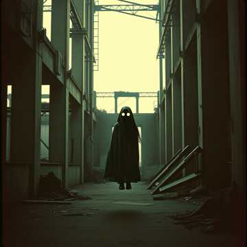 Doom metal with industrial undertones, 75 BPM, atmospheric machinery noises, crashing metal, chaotic thrash bursts, layered growling and clean vocals