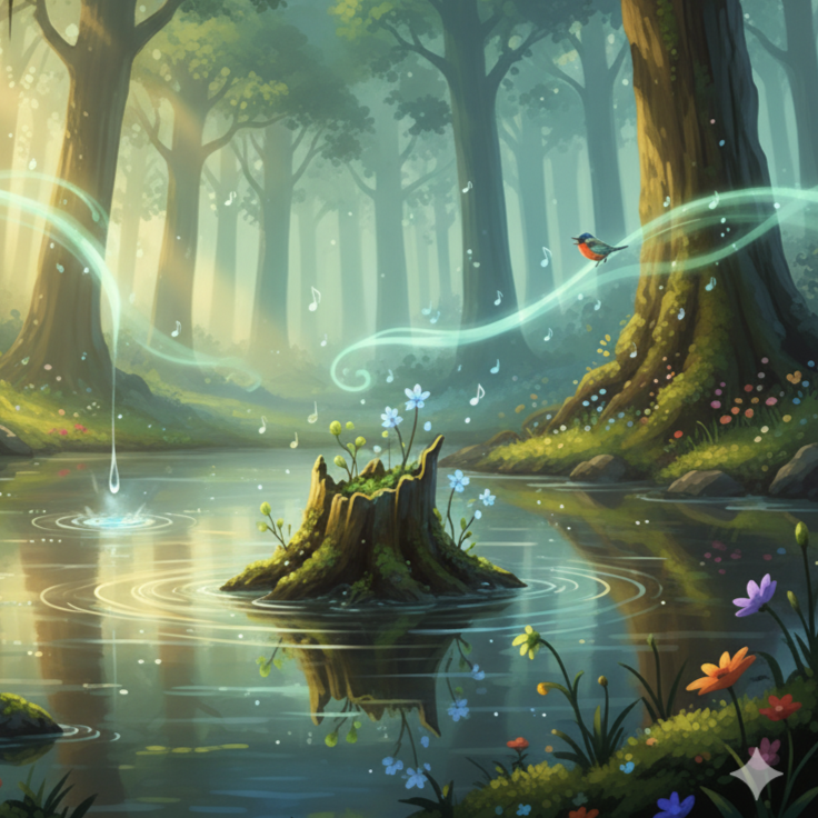 tranquil, instrumental layers with soft strings and gentle piano, healing