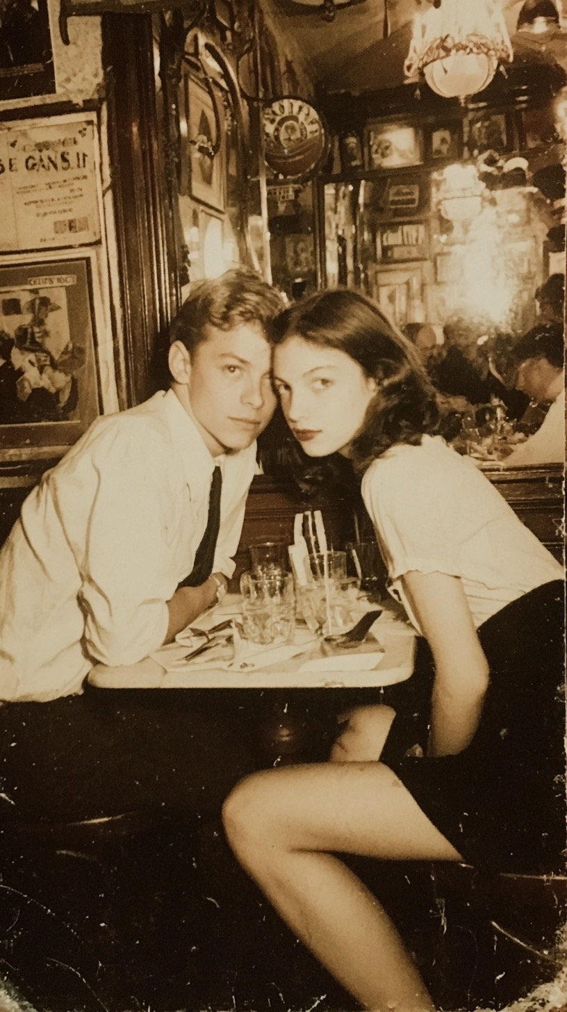 1950s Lo-fi Doo-wop, Vintage Mono recording, Warm vinyl crackle, Muffled vocals, Upright bass, Slow swing, 1950s Love Ballad, Shrill saxophone solo, Melancholic but sweet, Analog saturation, Hissing tape
