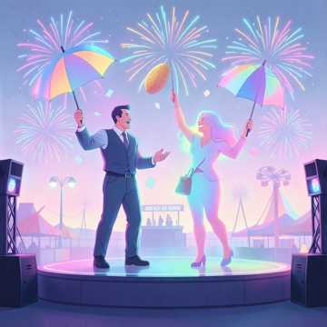 Whimsical carnival parade march, playful circus orchestra, mischievous accordion, bright brass band, tuba, snare drum, xylophone, theatrical orchestral hits, slightly eerie but cheerful amusement park atmosphere, quirky Japanese pop comedy song, energetic female and male duet, catchy singalong chorus, dynamic tempo changes, humorous theatrical performance, polished festival production, big hit novelty song humorous theatrical vocals, comedic timing, cartoonish brass stabs, amusement park parade energy, playful call and response, dramatic circus finale, quirky anime opening vibe