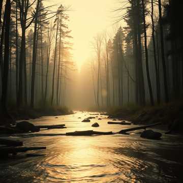Nordic orchestral, warm Drop Kick Bass, 174 Hz Tuning, soft harp, woodsticks, wind, water in river, 432 hz Tuning, orchestral, warm