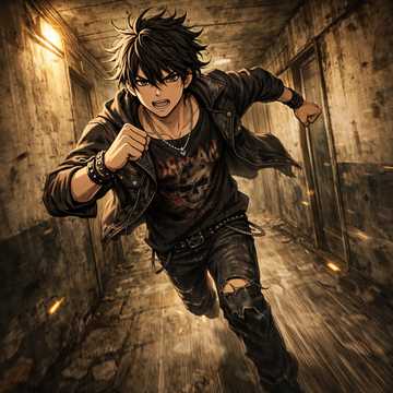 The skate-rock track explodes with a wild, reverb-drenched guitar riff, layered with a second guitar weaving spiraling, tremolo harmonies, Hyper-speed skate-punk drums and snarling bass drive the relentless momentum, Verses unleash furious riffs, while choruses soar with **velvet-like yet intensely emotive vocals**, layered with lush harmonies that cut through the chaos, Dynamic fills and intricate interplay heighten the tension, The bridge shifts into surf-rock theatrics via chopped tremolo picking before snapping back into fierce punk, culminating in a textured, electrifying finish that balances aggression and smooth, commanding vocal presence