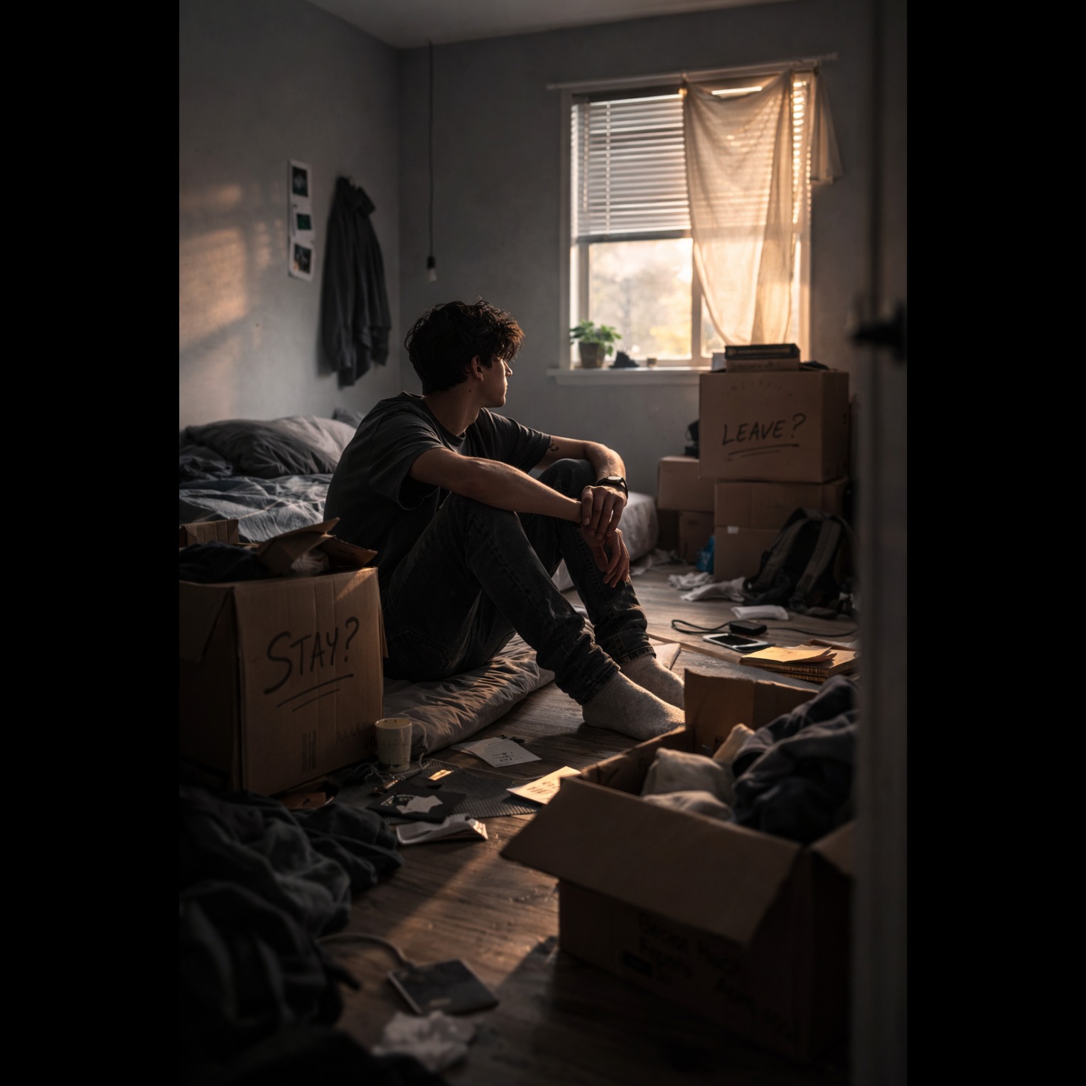 Emo pop, pop-punk, 105 BPM, clean electric guitars with light distortion, simple driving drums, emotional male vocal, intimate verse dynamics, big anthemic chorus, diary-like confessional tone, melodic hooks, no heavy screaming, polished pop-punk production