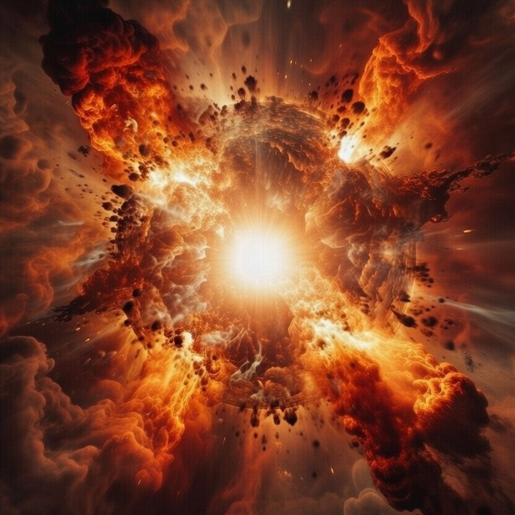 Dual cosmic goddesses in eternal clash: ethereal high soprano entity — translucent pale blue nebula skin, flowing aurora-like hair of light streams, radiant glowing halo aura; versus dark contralto primordial force — deep obsidian-violet body laced with molten crimson veins, wild tangled comet-tail hair in blood-red and midnight shades, piercing black-hole eyes, Palms almost touching, unleashing colossal supernova spark ripping spacetime apart, Collapsing galaxies, falling star fragments, violent clashing god rays, extreme chiaroscuro contrast, Cinematic symphonic metal atmosphere, hyperdetailed intricate energy patterns, 16k ultra resolution, unreal engine 5 render --ar 9:16 --stylize 850 --v 6