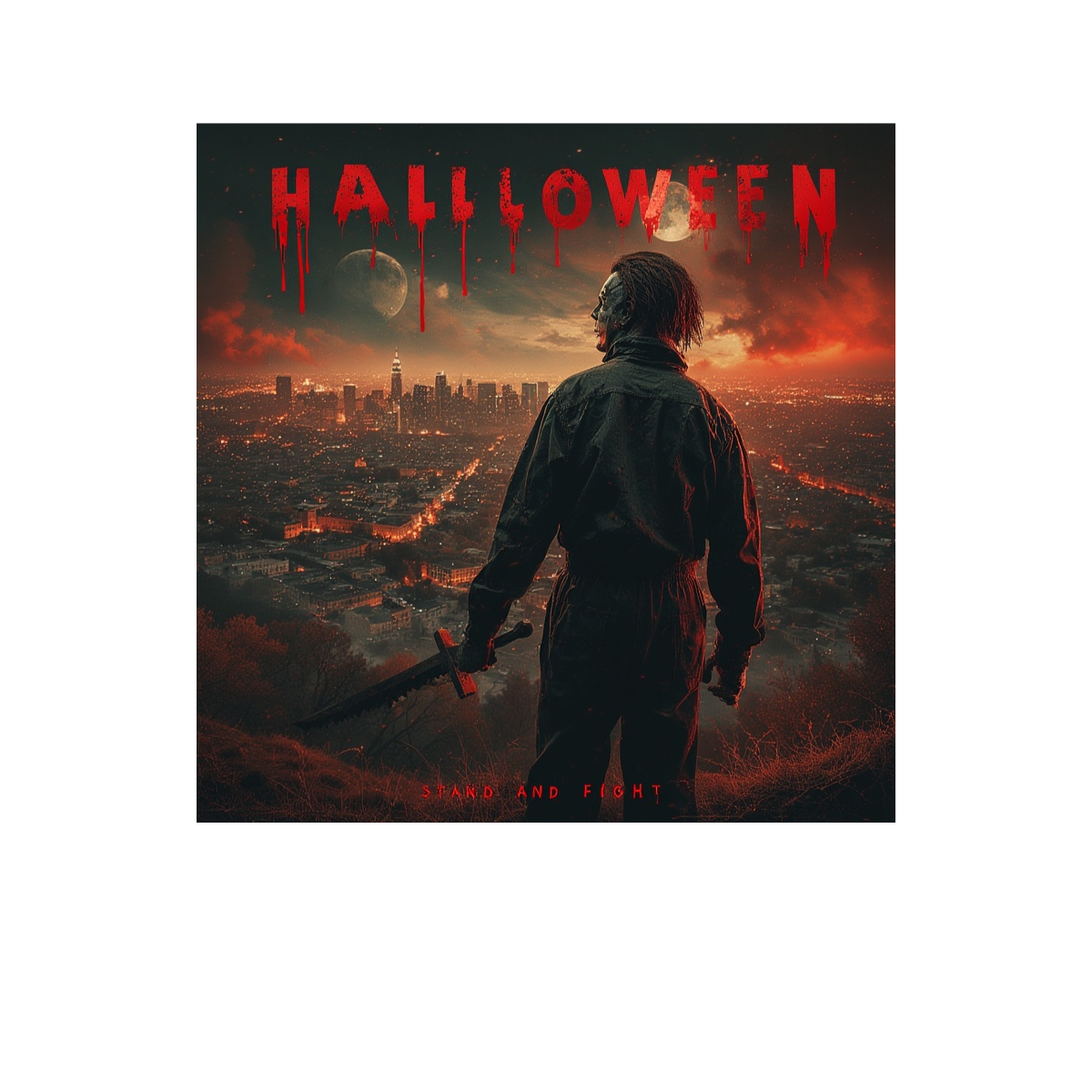High-energy synth-rock / EDM fusion, Inspired by John Carpenter’s Halloween theme but reimagined with pounding drums, distorted guitars, heavy bass, and aggressive synths, Keep the iconic piano riff woven into verses and choruses, Vocals urgent and defiant — verses whispered and tense, choruses explosive and powerful, Fight-or-flight theme with a strong “stand and resist the darkness” vibe