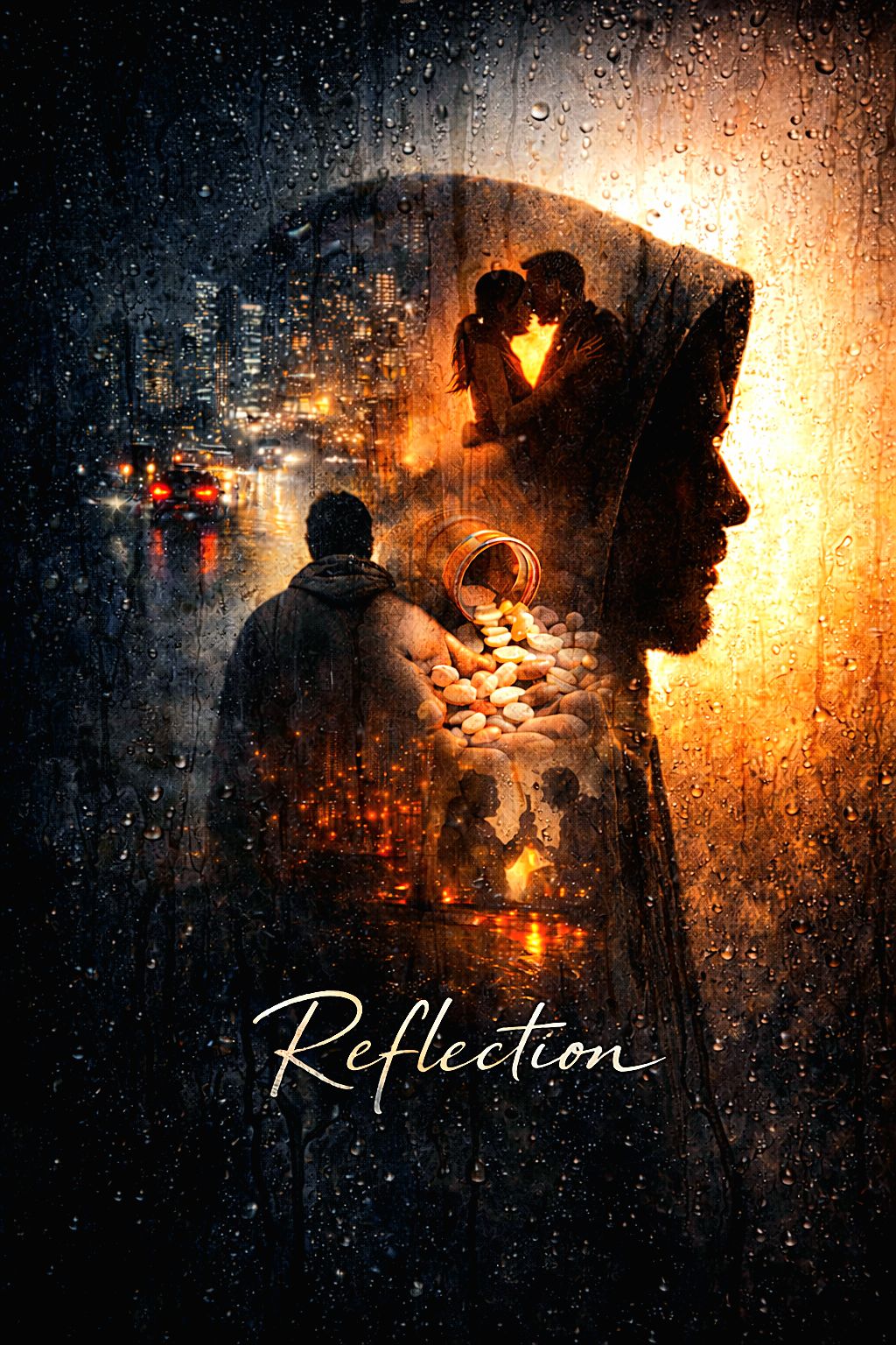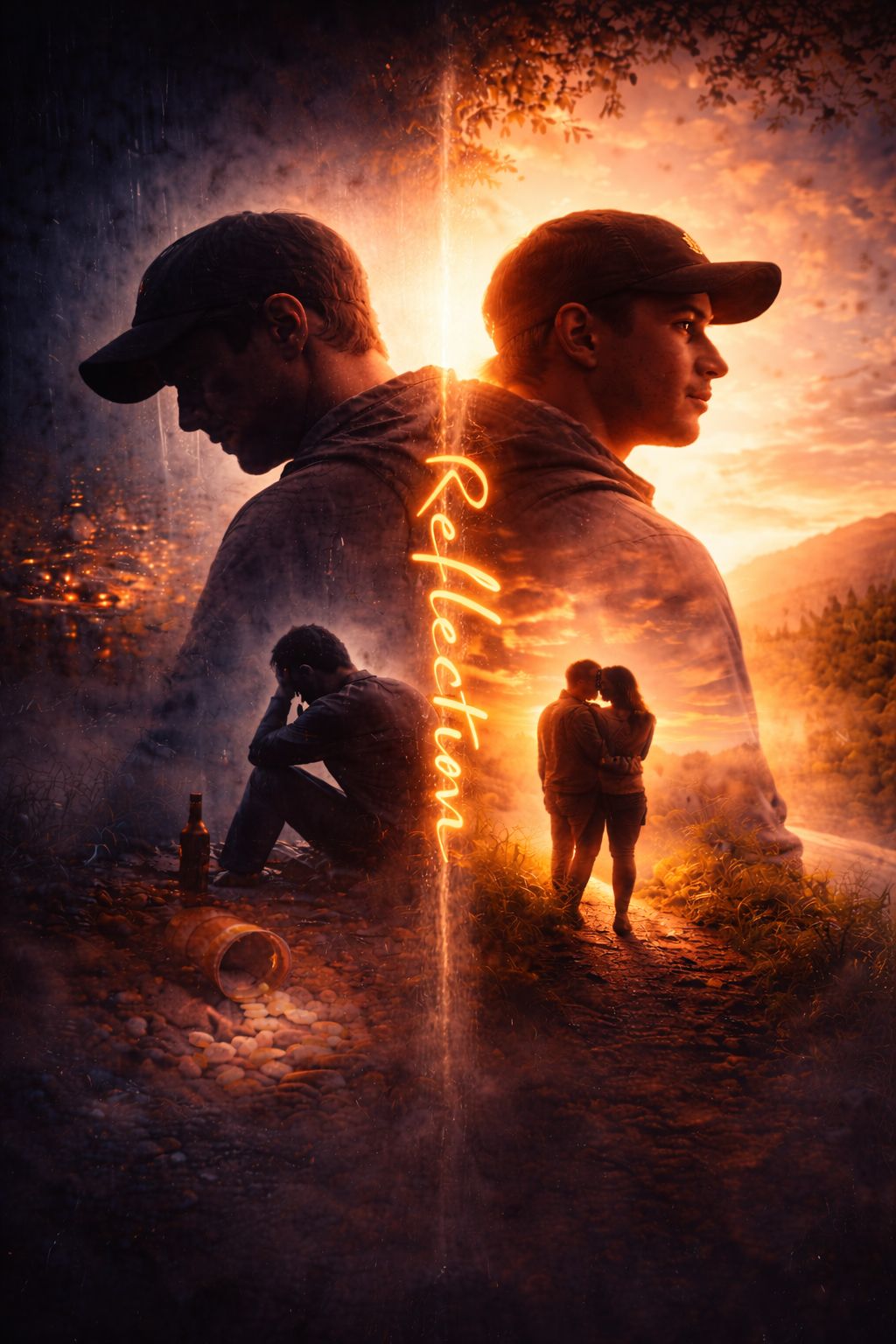 cinematic rap R&B fusion, blending eerie storytelling with a haunting melodic hook, It feels like a psychological thriller, evokes unease, paranoia, and fascination with the supernatural, explores identity, duality, and madness through a dreamlike mirror metaphor, Soft, hypnotic vocals against dark, menacing imagery, vulnerability meets fear, There’s an underlying sadness beneath the horror like a soul trapped between worlds