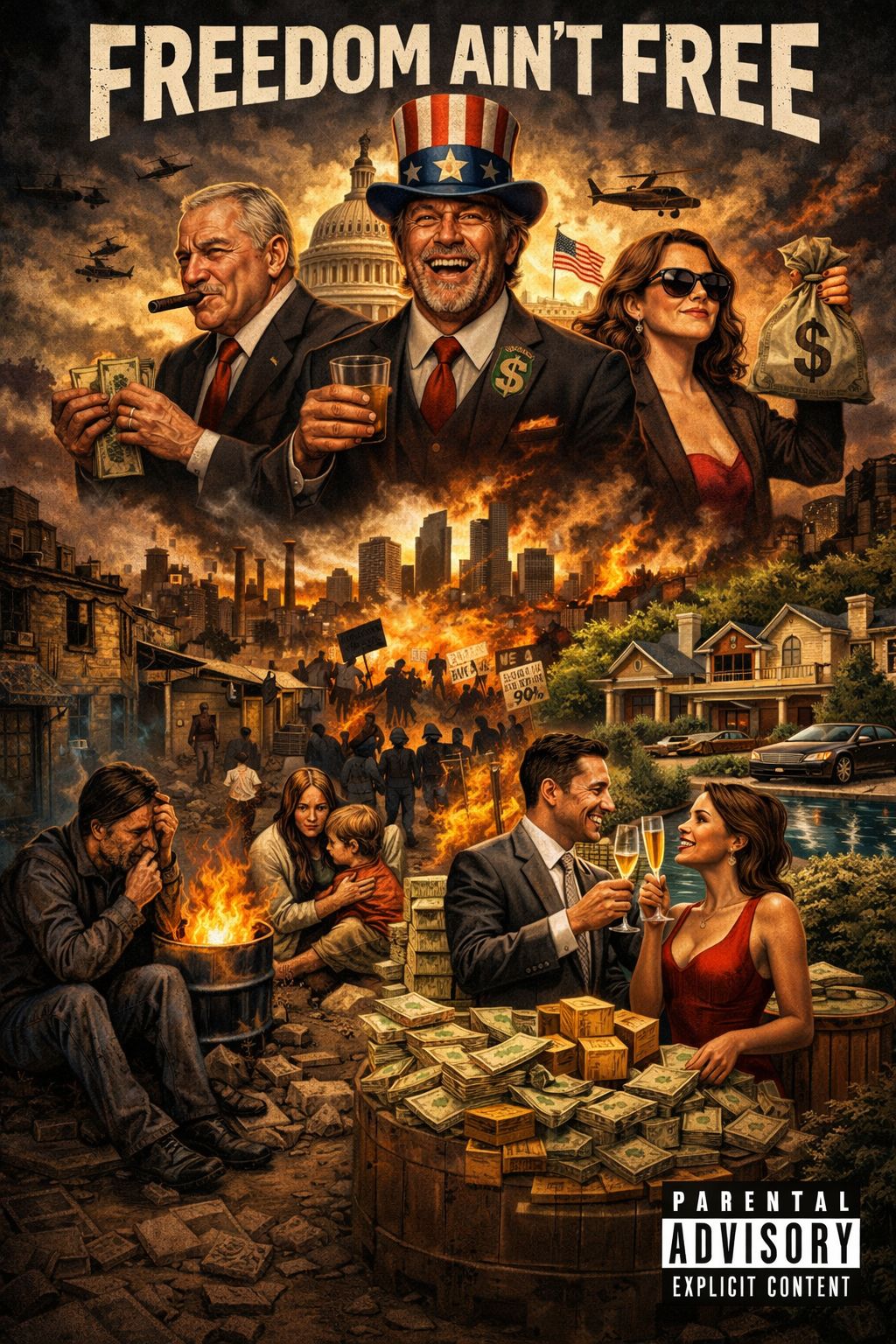 Emotional, Hip-Hop, Conscious rap, Political unrest, Underground, confrontational, minimalist beat 90s era production, piano and strings, stripped down soulful, heavy, protest anthem, spoken word over a beat, Immortal Technique