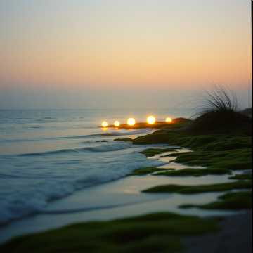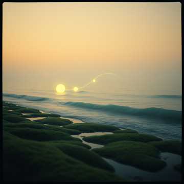 cosmos indie × nostalgic folk × emotional acoustic ballad — instrumental, Main lead: slack-key acoustic guitar in open G tuning, with gentle glissandos, pull-offs, and hammer-ons, evoking Hawaiian wave motion, Secondary lead: warm, breathy trumpet solo in the bridge, with mild vibrato and lyrical phrasing, Support: soft ambient pads and faint ocean/wind field recordings, light hand percussion (brush snare, shakers, cajón), Mood: bright, gentle, melodic, healing, Structure: