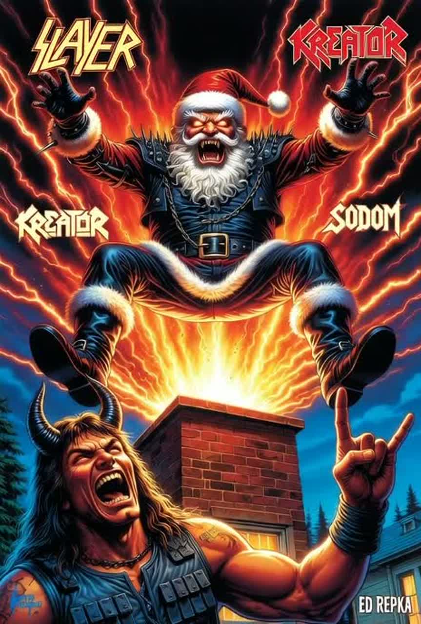 An insane, ridiculously fast, and humorous Christmas-themed Crossover Thrash / Speed Metal track in the style of early Slayer's, Kreator's, and Sodom'd, The song is a "letter to Santa" from a die-hard metalhead, filled with references to classic thrash metal bands, It features blistering, chaotic guitar riffs, relentless blast beats and d-beat drums, and a raw, aggressive, shouted vocal delivery with a manic edge, The mood is pure, chaotic, anti-holiday fun for metal fans