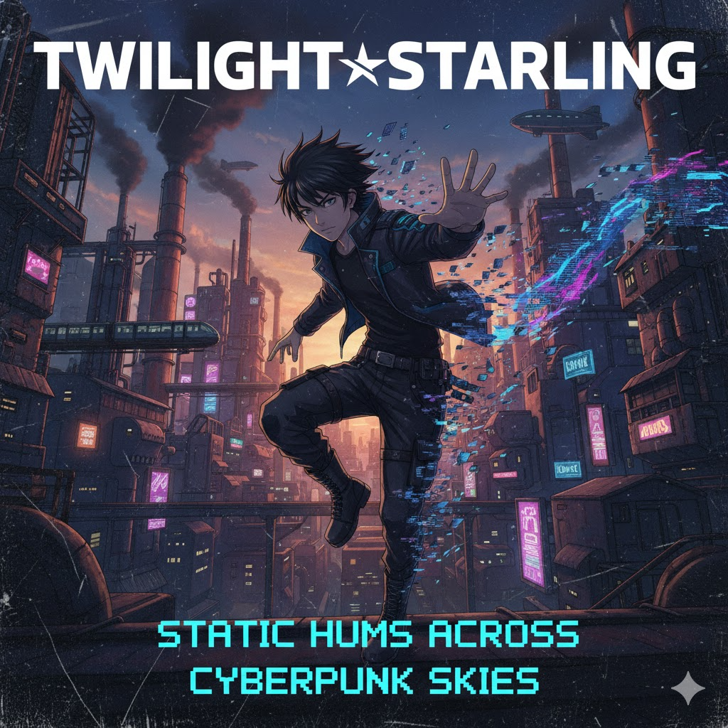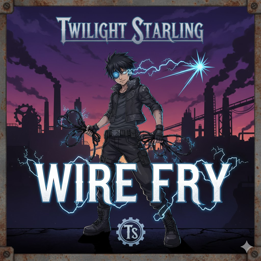 Dark industrial Cyberpunk Trap, dark yet eerily charming instruments, dark industrial modern sound, male singer only, male vocals ranging a2 to a4