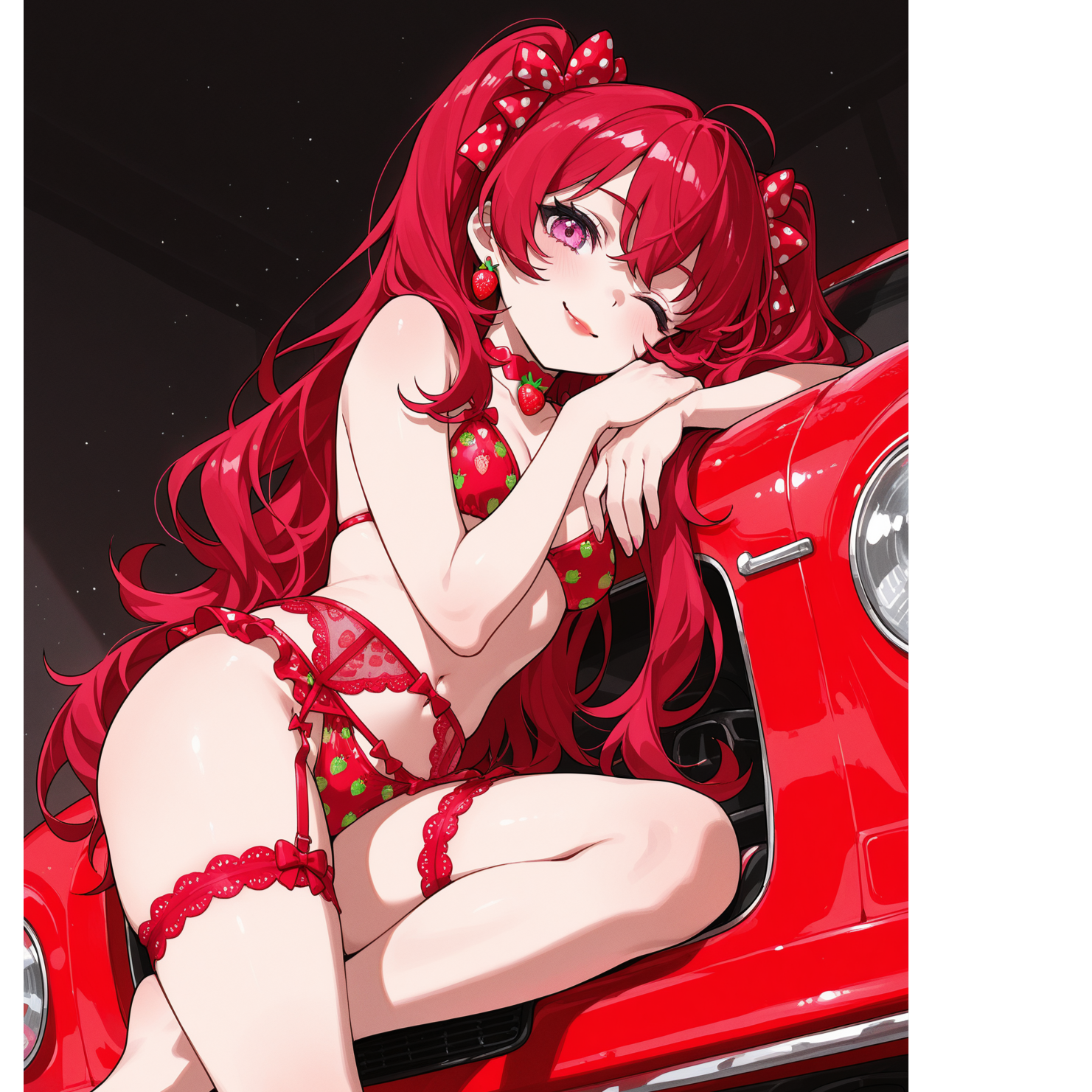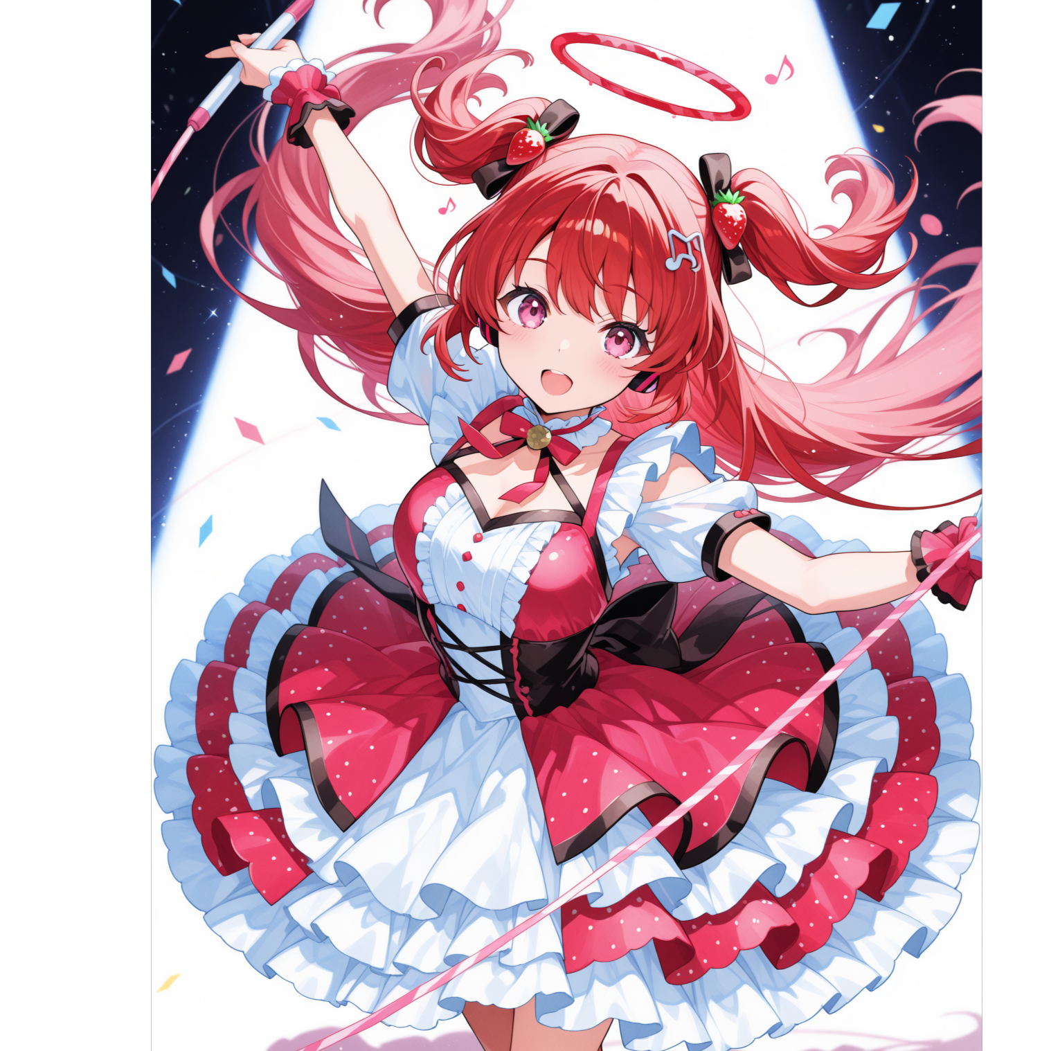 A super high-speed electropop song sung by a cheeky and flirty girl named Ichigo, The music is hyperactive and chaotic with ultra-fast BPM (185), rapid-fire vocals, playful melodies, and suggestive lyrics, Lyrics are cute, teasing, and slightly erotic, full of sweet metaphors like kisses, candy, and traps, Style blends anime idol pop with denpa and hyper techno, Language: Japanese