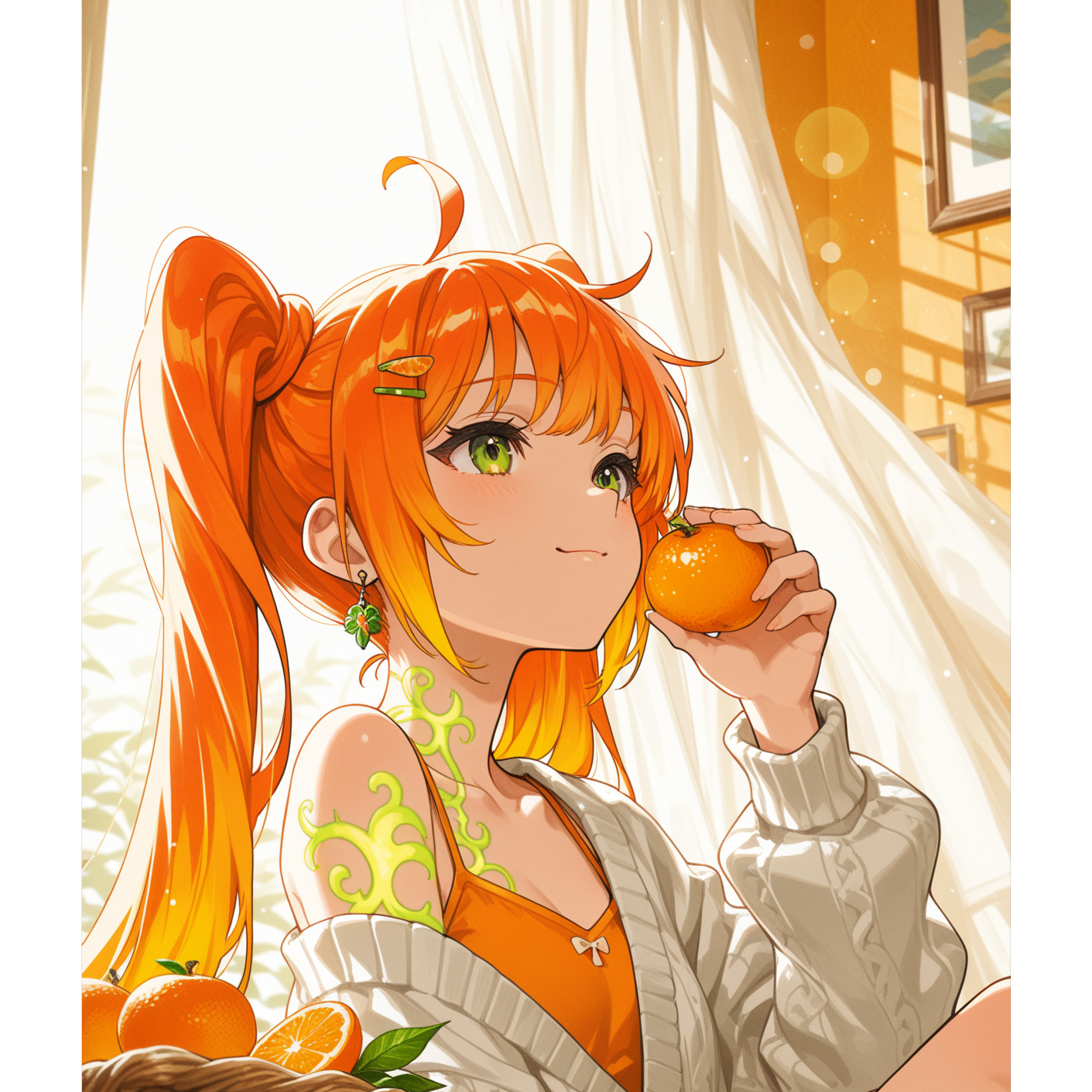 High-tempo J-pop song sung by a cheerful gyaru girl named Mikan, Upbeat idol-style with bright synths, fruity and flirty lyrics about morning routines, love, and confidence, BPM 155, Japanese lyrics below: