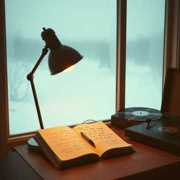 Dusty lo-fi beat with vinyl hiss, soft detuned keys, brushed snare, and warm sidechain bass; intimate female vocals close to the mic, Verses keep a sleepy, late-night pocket; chorus blooms with doubled whispers and subtle backing harmonies, Add distant wind ambience and soft chime hits on transitions, letting the track feel like a blanket against the winter outside, lo-fi