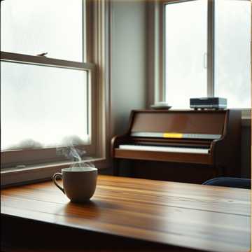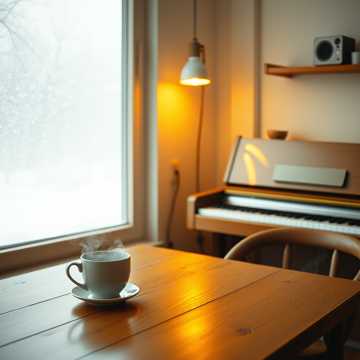 Soft lo-fi beat built from dusty vinyl crackle, warm electric piano, and mellow bass, Male vocals up close and whispered, almost confessional, Brushes on snare and a lazy swing keep it cozy; wordless hummed harmonies bloom in the chorus, Subtle tape wobble and room noise to feel like a tiny kitchen performance, lo-fi