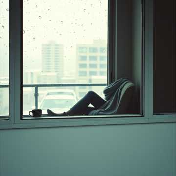 Dusty lo‑fi drums with warm sidechain swing, male vocals with close-mic intimacy, soft jazzy electric piano and mellow vinyl crackle, Verses stay hushed and conversational; chorus blooms with wider chords, subtle backing harmonies, and a round bassline, Occasional reversed guitar swells and tape-stop moments to mirror looking out at the storm while nurturing small colors inside, lo-fi, vocal