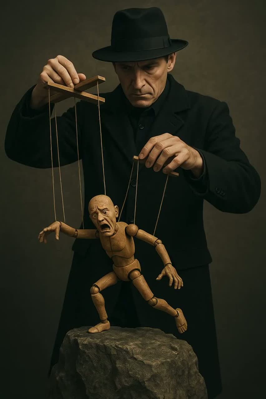 Dark, waltz haunting conspiracy, very dark deep male voice, owl, eerie, dark cabaret, bass, cello, dramatic, desperate