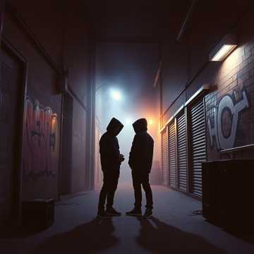 gritty indie hip-hop with male and female husky vocals, rough textured voices trading lines and occasional unison hooks, tough spoken-rap delivery with emotional weight, underground indie rap atmosphere, minimal but punchy boom-bap beat mixed with modern lo-fi hip-hop elements, dusty drums, deep bass groove, raw street energy, reflective and slightly philosophical mood, imperfect human vocal tone with rasp and breath, conversational rap flow that feels like late night thoughts, subtle indie rock guitar textures and ambient pads in the background, chorus with both voices layered for a strong rebellious feeling, intimate underground vibe, poetic and introspective but confident, dynamic rhythm changes between calm verses and powerful hooks, raw indie production aesthetic