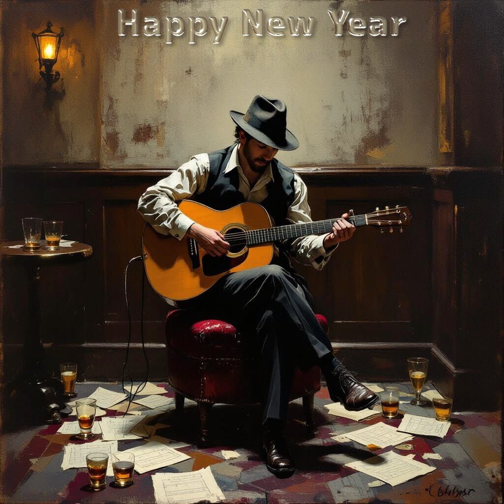 Classical guitar solo, Waltz-like feel in 3/4 time, elegant and flowing, Emotional spirit of Johann Strauss’ “An der schönen blauen Donau, ” arranged for solo classical guitar, Warm nylon-string tone, expressive phrasing, lyrical melody, gentle vibrato, Mood: hopeful, nostalgic, celebratory — like a New Year greeting by the river, Title: “Serenata de Happy New Year, ”