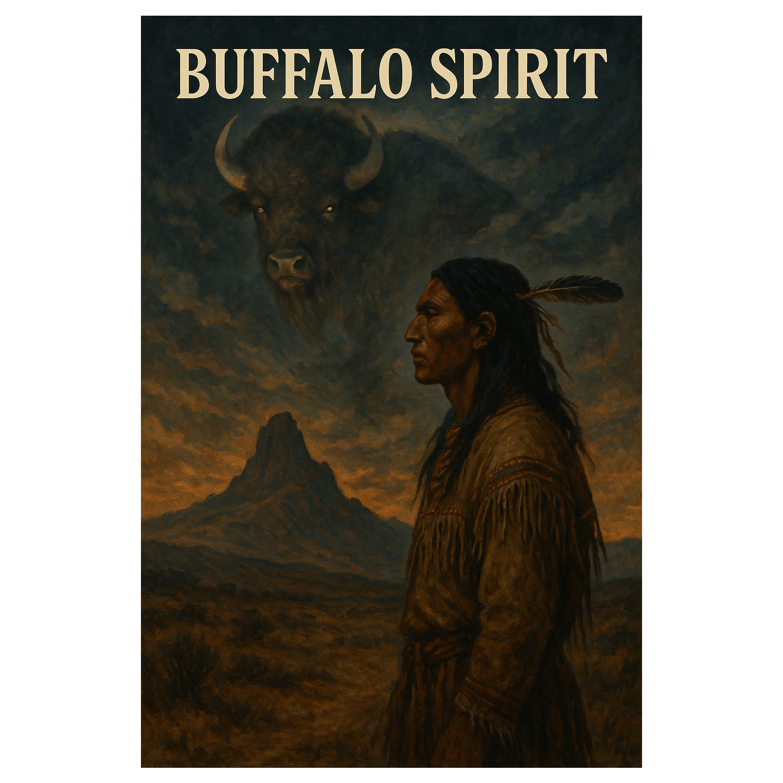 A slow, spiritual Native Western ballad with deep, storytelling male vocals, Inspired by Native American legend and shamanic ritual, Features tribal drums, native flute, ambient textures, and subtle Western guitar, The song tells of a young brave who seeks a vision during a great drought and sacrifices himself after a vision of the spirit of the buffalo, Voice of the Buffalo Spirit: spherical male voice, elder voice: raspy male voice of an native old men, This voice should sound like a tribal elder, spiritual and ancient, The atmosphere becomes mystical and rhythmic, like a sacred ceremony under the stars, Cinematic and poetic, with sounds of wind and desert spirits, The vocals feel like an elder singing a sacred story beside a fire
