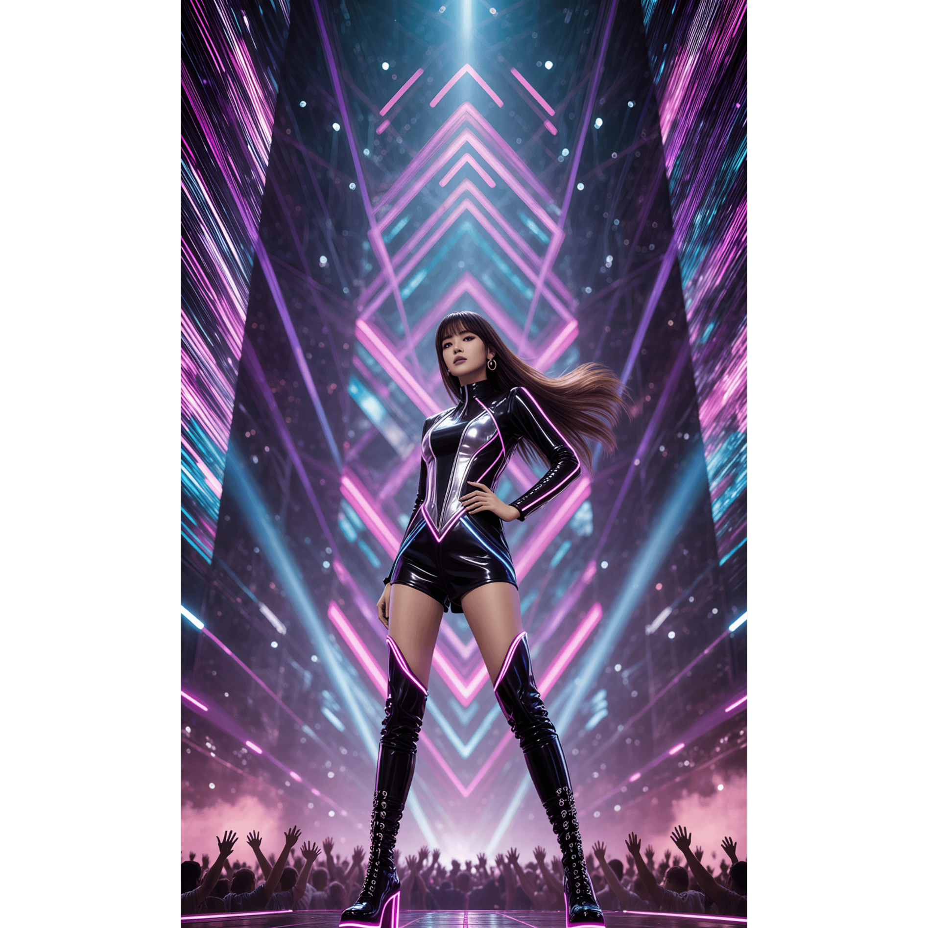 High-energy K-pop x soft jumpstyle fusion track with festival EDM aesthetics and YG-style pop attitude, Features bold female vocals with a fierce tone, clean 4-on-the-floor kick patterns, light reverse bass, melodic trance leads, glitchy vocal chops, syncopated synth stabs, and a huge euphoric drop, Mostly instrumental, Tempo ~150 BPM, Clean studio mix, punchy and wide stereo image, ‑acoustic, ‑lo-fi, ‑indie, ‑indie pop, ‑jazz, ‑funk, ‑reggae, ‑dub, ‑classical, ‑ambient, ‑experimental, ‑hyperpop, ‑drill, ‑trap