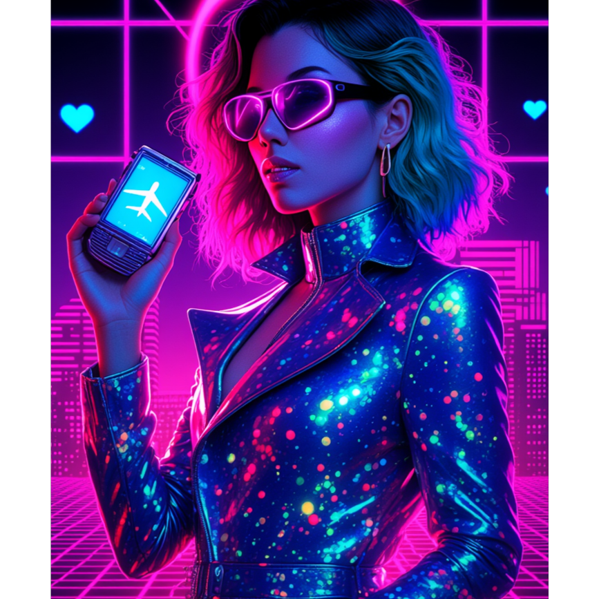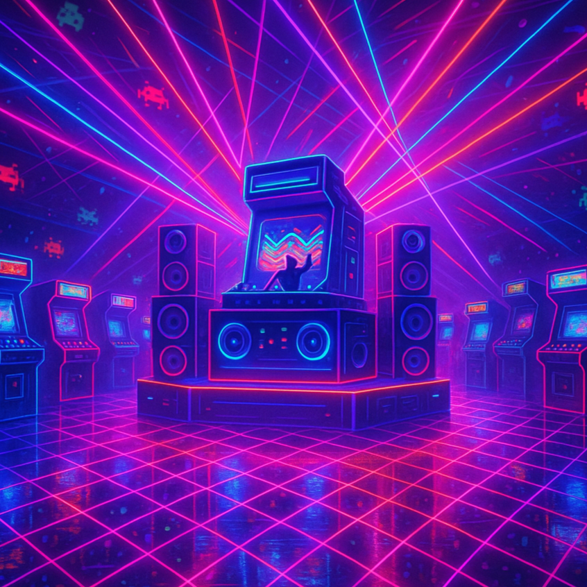 Modern techno track infused with retro 80s aesthetics, Strong 4-on-the-floor kick, deep and punchy basslines, and powerful club energy, Includes vintage analog synths, gated snares, arpeggiated melodies, and neon-style pads inspired by synthpop and Italo-disco, Groovy yet hypnotic, with filtered transitions and nostalgic textures, Robotic FX, tape delays, lush reverb, and subtle vocoder touches, Tempo 130 BPM