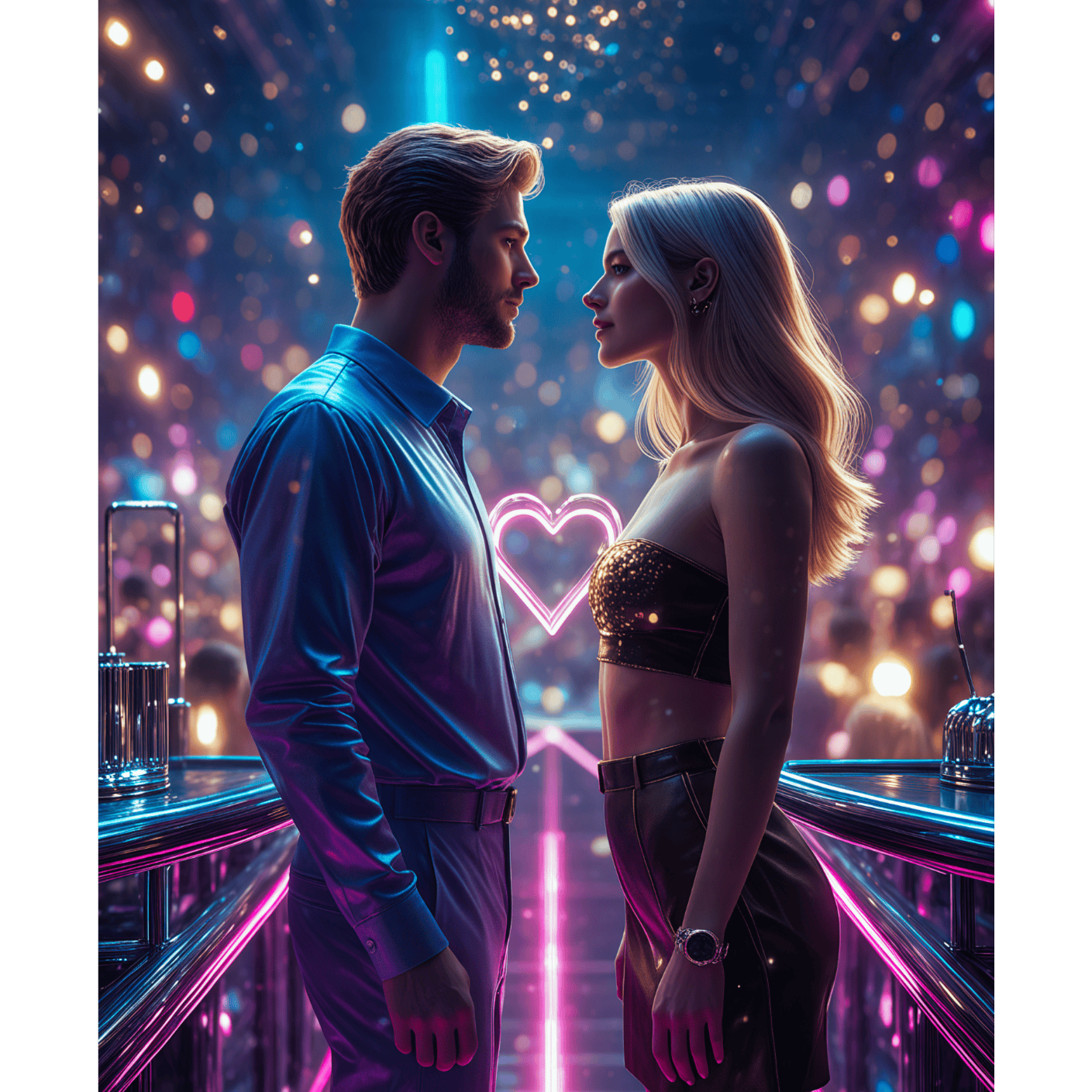 French electro-pop with a dreamy and sensual atmosphere, inspired by 1980s synth ballads and modern synthwave, Features warm analog synth pads, light arpeggios, funky basslines, gated snares, and vocoder accents, tempo 100 BPM to evoke emotion and intimacy, Retro-futuristic soundscape with playful yet melancholic harmonies, catchy with a danceable beat