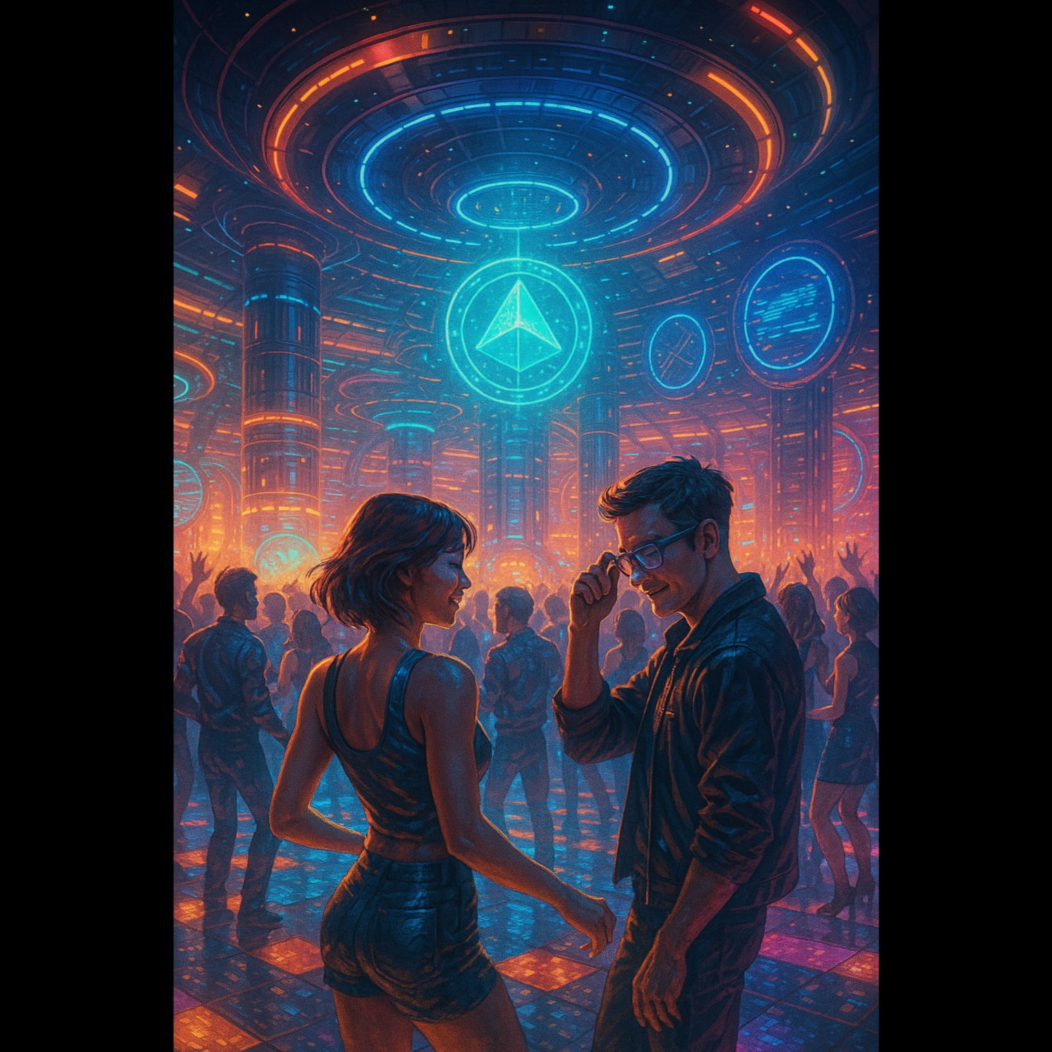Evolving melodic journey blending Festive Electro and Bass Techno, gradually transforming into Psytrance × Dark Techno with melodic acid lines, Smooth progression of tempo and energy — bass grows heavier, kicks tighten, and melodies become hypnotic, Add chopped and re-pitched vocal fragments as ethereal hooks, Warm analog synths, TB-303 squelch, deep sub layers, and driving percussion, Mastered for a powerful, immersive finale