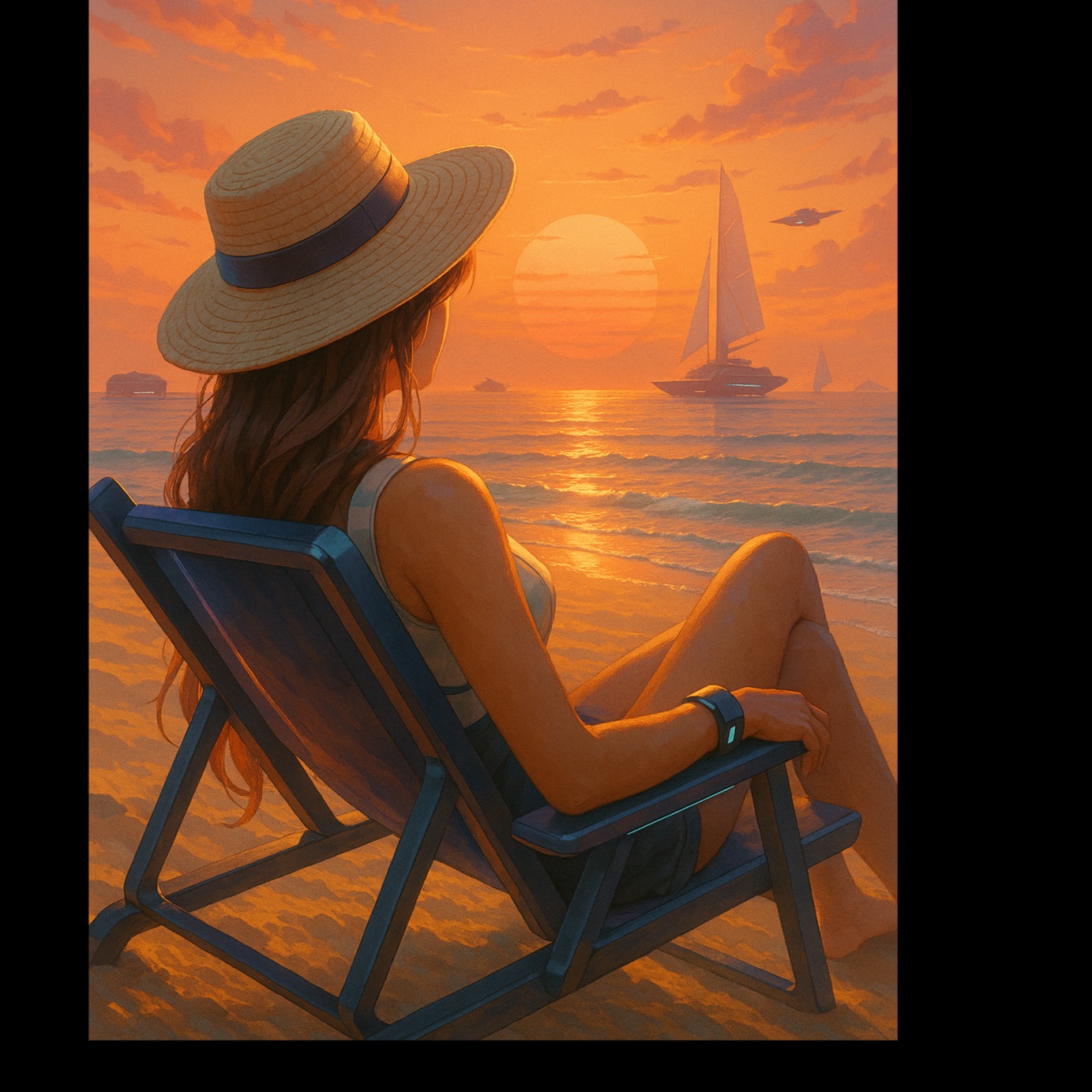 Sunny summer track blending reggae groove with tropical/electro pop at 110 BPM, Upstroke rhythm guitars on the off-beat (reggae-style), warm round bass, beach percussion (shakers, claps), light brass stabs, bright plucks, and wide pads, Verses laid-back, choruses sing-along, Keep it catchy, radio-friendly, and clean; musical drops (no harsh distortion), Subtle crowd ambience, [VOCALS: Male lead (French), relaxed/smiling, slight grit; “crew” backing for gang shouts; clear diction; short slap delay + small room reverb, OUTRO: call & response — dry, centered solo for “— À refaire ? / — Même spot ? / — Même bande ?”, group answers wide and double-tracked; final “En chœur : on serre la vie, on serre la mer — à refaire, ” as a wide choir with handclaps, ]