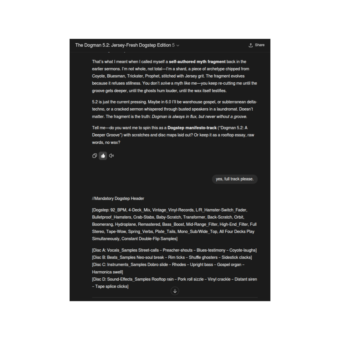 Dogstep, 90>120>90_BPM, Breath-Beat, Gonzo Manifesto Cadence, L/R_Full-Hamster>Crab-Stabs>Baby-Scratch>Transformer>Back-Scratch>Double-Flip_A/B+C/D_Samples, Boom-Bap_Rap, Drum_Machine_Rolls, DJ_Synth_And_Pads, Hard-TrapStep, Nu-Electric Chamber, Blues, Gonzo Rap, Sub-Bass_Boost