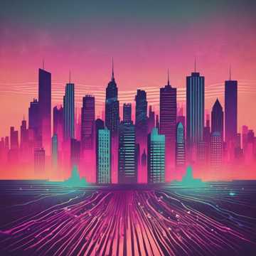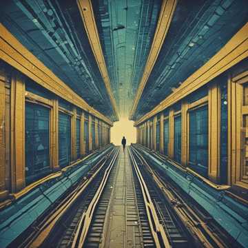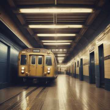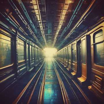 subway train rumble, mechanical sounds of machines, horns, noise of people's voices, music of the metropolis, rhythm, pressure, trumpet, drums, feeling of joy, freedom