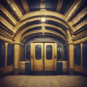 the rumble of a subway train, mechanical sounds of a speaker, the noise of people's voices, retrojazz, ragtime, the mood of the Golden Age, the era of the Great Gatsby, vocal jazz