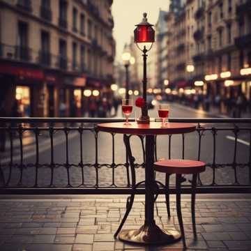 Chanson of Parisian streets, melodies of the Boulevard des Capucines, emotional declaration of love, violins, accordion, complex melody, velvet vocals, hot jazz, folk