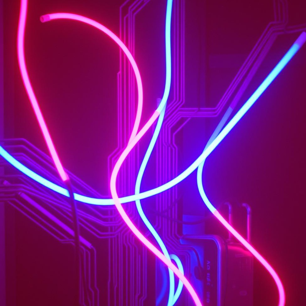 Pounding industrial guitar riffs layer with aggressive synth sequences and pulsing, danceable electronic beats, High energy, Fast electronic pulse, aggressive industrial guitars, dual vocals (low male, soaring female), and glitchy effects symbolizing coded warfare