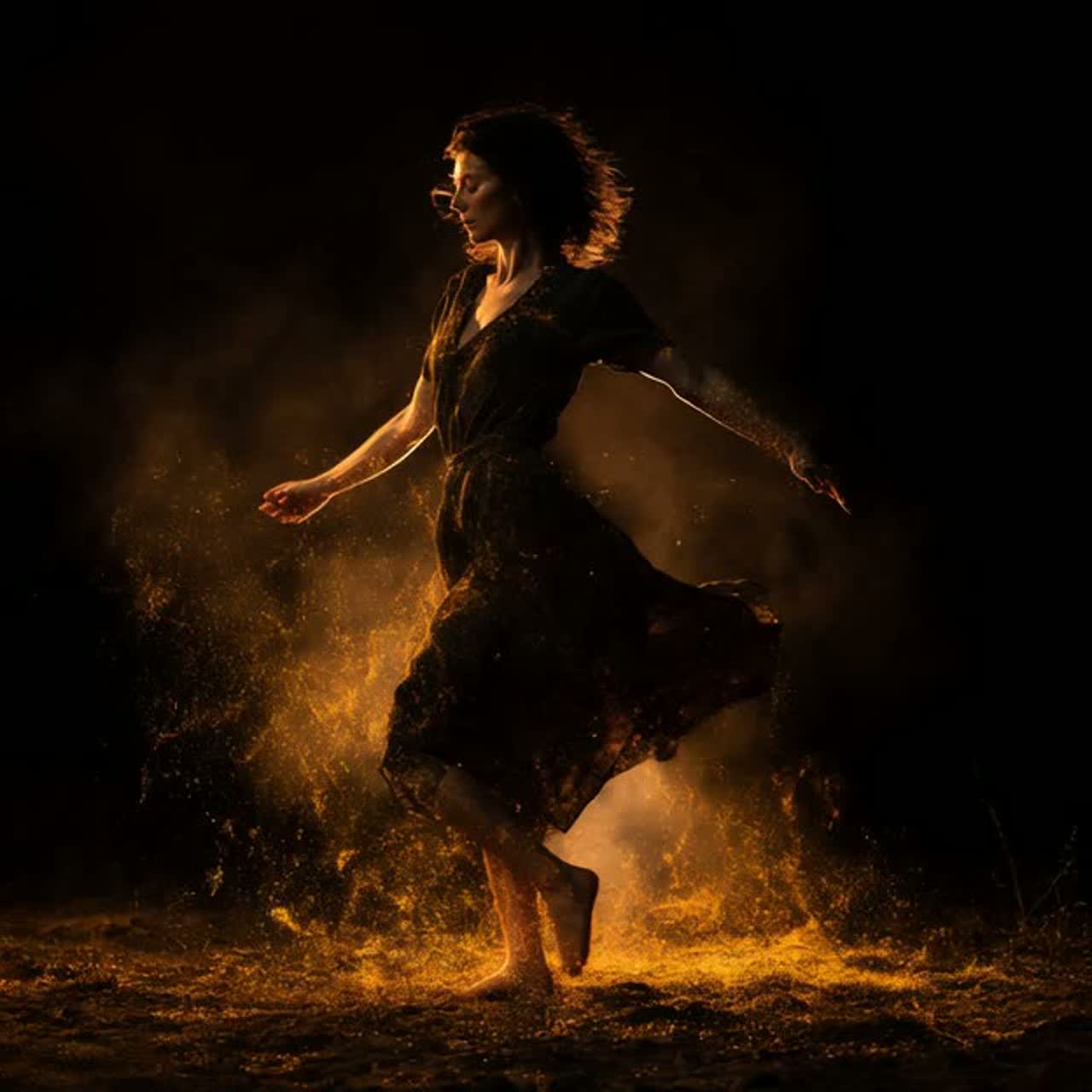A hypnotic French dance track (124 BPM) with a warm, deep female voice, Mix electronic groove, gypsy guitar, and cinematic percussion, The singer whispers and then explodes in the chorus, repeating “Danse avec le feu”, Add short pauses and rhythm breaks for movement sync in TikTok videos, Style: electro-pop / gipsy-house, Mood: mysterious, confident, sensual, and strong