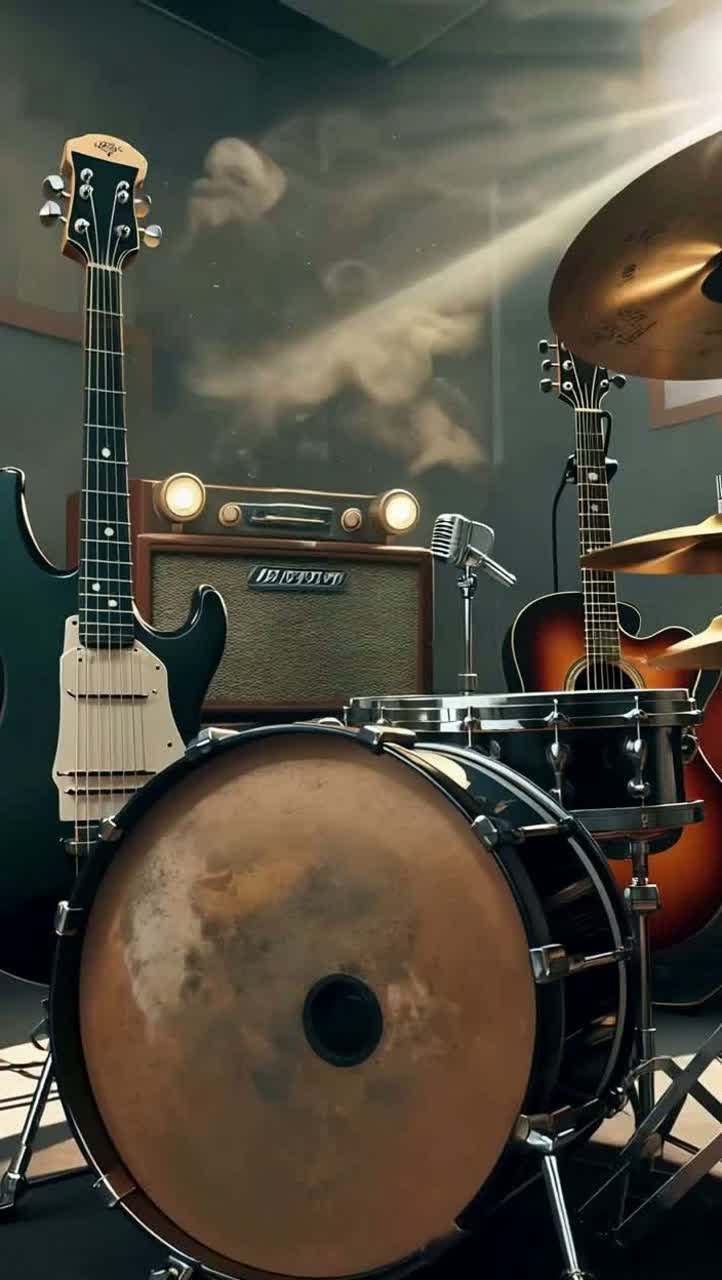 An uptempo 50's Rockabilly/Psychobilly/Surf track blends raw four-on-the-floor rhythm driven strictly by a hard hitted floortom in the foreground, upright bass slaps hard and loud, twangy guitar leads, and classic Lo-Fi character, Minimal snare, tight hi-hat, ride, and occasional crash add texture, capturing rough retro 50's flair