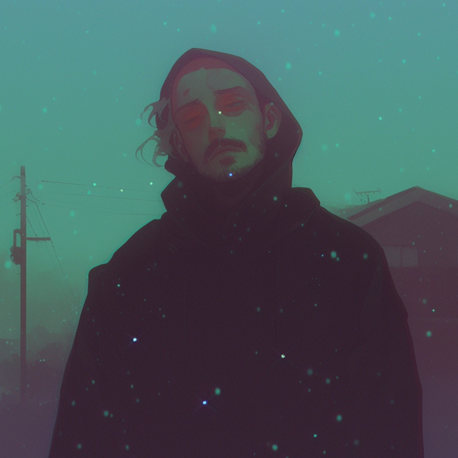 Smoky vaporwave pads over gritty phonk drums, saturated bass gliding under icy darkwave synth leads, Male vocals half-spoken, half-sung with a distant goth reverb, hook explodes with stacked harmonies and distorted shouts, Verses feel like cruising through glitchy tunnels; bridge drops to filtered drums and pulsing arps before a final, big, anthemic chorus, vaporwave