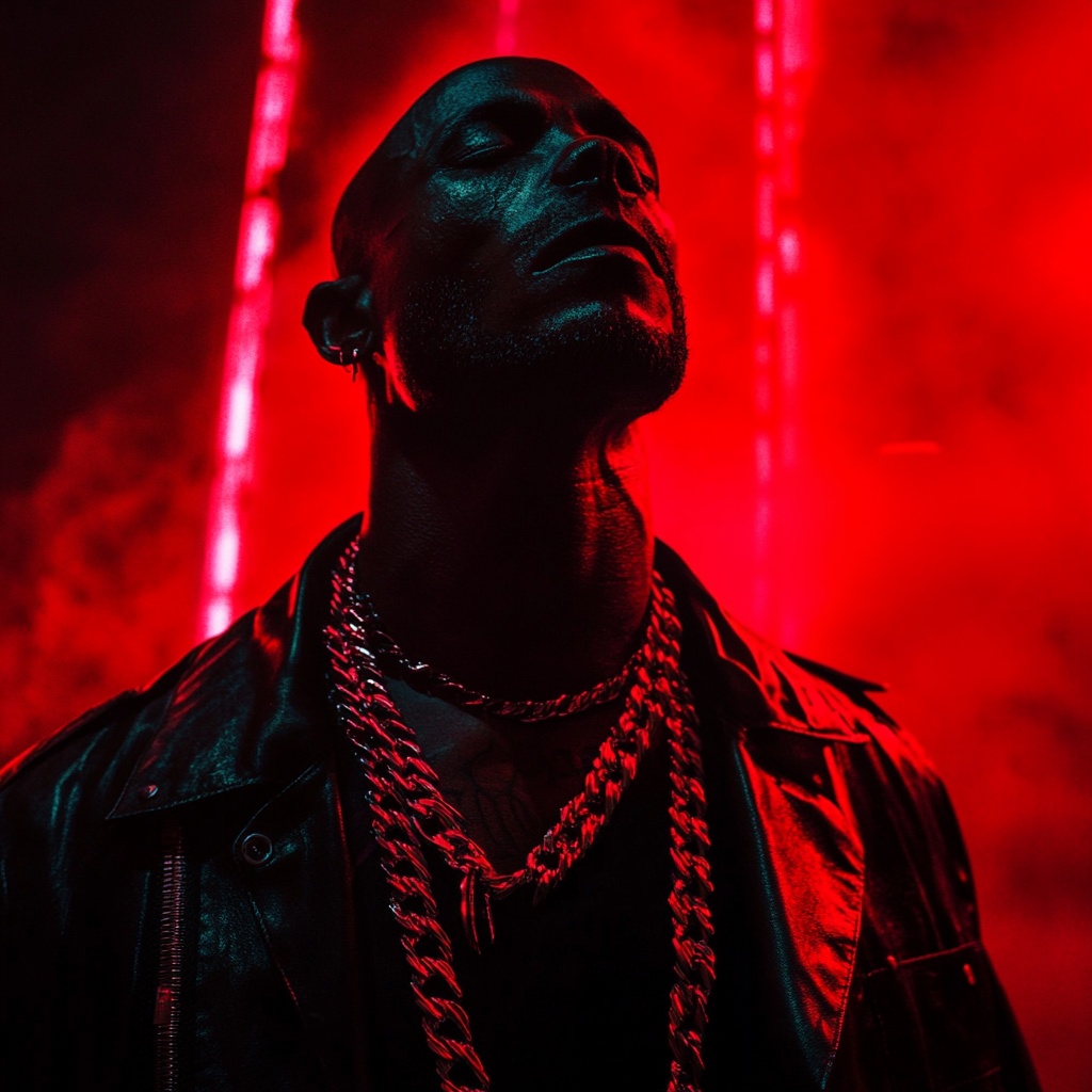 rap, Crushing dark techno and electro-industrial hybrid with male vocals, Pounding four-on-the-floor kick, distorted reese bass, metallic synth stabs, and eerie pads, Verses ride a swung trap groove with stuttered hi-hats and filtered vocal chops; chorus slams into full-on warehouse mode with stacked, shouted hooks and octave harmonies, Occasional half-time switch-ups and glitchy fills for aggression and drama, cinematic sub drops to reset the energy, hip hop, alternative r&b, techno, beats, electro, electro-industrial, industrial