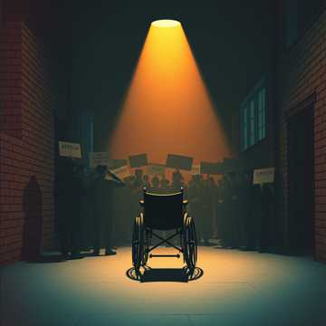 Spoken word for podcaster in radio show, raw female vocal, background vocals of protesters, dramatic, female voice