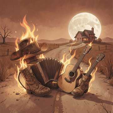 rock, Playful Brazilian country-rock clash: start with breezy viola caipira, shaker, soft male vocals with nasal twang, First hook rides handclaps, stomps, and accordion answering viola phrases, Then slam into crunchy, detuned guitars, halftime rock drums, gang shouts shadowing the chorus cadence, Each flip brings thicker layers—fiddle riffs, call‑and‑response backing vocals, tom-heavy fills, Final outro explodes into a chaotic mashup where country band and rock band play over each other, then hard stop on a unison shout, playful, country, light, accordion, mashup, sertanejo, male vocals